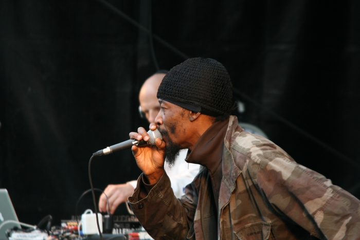 Numer dwa na scenie – Mentol Nomad z Nowego Jorku, ponoć tworzy od późnych lat 90. Trudno oprzeć się wrażeniu, że chyba gdzieś w tym okresie się zawiesił. Zamaskowany iście nomadyczną chustą podaje ciężkie metaliczne bity. Brzmi trochę jak Scorn, problem w tym, że w nieskończoność buduje atmosferę: rozciąga metaliczne, chropawe tła, tak że mija dobre 15 minut (jeśli nie 20) zanim uderza jakikolwiek konkretny bit. Generalnie nudzi. I to nie tylko mnie. Przeciąga swój set, a nieliczna publika stopniowo coraz bardziej się wykrusza; nie pomagają nawet projekcje oryginalnego kung fu z Tajwanu albo Hong Kongu – nie dziwne: pomysł wyszukany jak muzyka. W końcu za deckami staje Skiz Fernando alias Spectre (aka Ill Saint). I nie rozczarowuje. Bity są masywe, basy tłuste – też mroczne, ale jednak dużo bardziej dynamiczne. Podobnie jak nawijki Sensationala, który po dłuższej chwili dołącza do didżeja – mimo że sala świeci pustkami nie zasypia gruszek w popiele. Albo robi dobrą minę do złej gry?