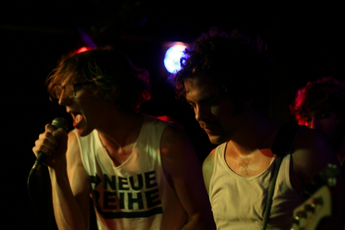 Po projekcji jeszcze jedna dawka muzyki - Mustafa Moustache z Francji. Trio w składzie: bas-gitara-wokal plus bębny z laptopa. Ich muzyka oscyluje pomiędzy hard core'm i punk rockiem, zahaczając raz to o melodyjne brzmienie z Kalifornii, raz o agresywne screamo, czy postpunkowe rzępolenie. Widać że chłopaki dobrze się bawią grając, zwłaszcza wokal. Ale publiczność już mniej. Zanosi się na koniec zabawy.