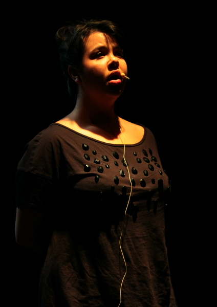 Miya Masaoka, japońska artystka zajmująca się improwizacją i sound-artem, przebywała w Warszawie na rezydencji artystycznej, którą spięły klamrą dwa koncerty. Pierwszy, na Chłodnej 25, był koncertem improv z warszawskimi muzykami (niestety nikomu od nas nie udało się dotrzeć), drugi, po dwóch tygodniach, miał zaplanowaną, dwuczęściową strukturę. W pierwszej części zobaczyliśmy Masaokę solo, w drugiej utwór przez nią przygotowany z kwartetem warszawskich muzyków.
