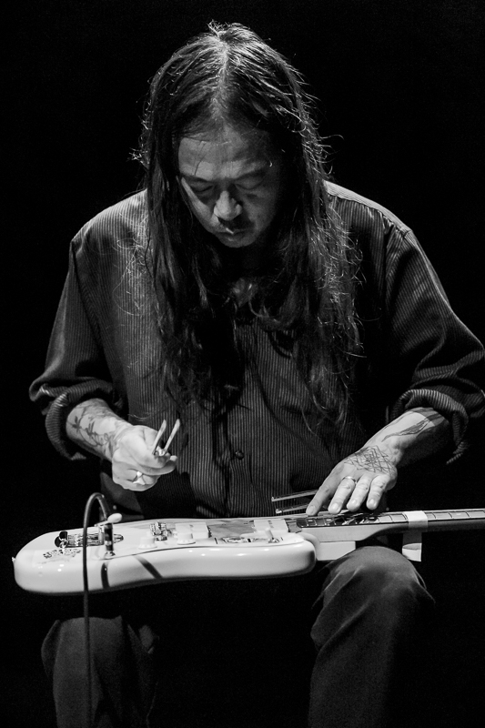 Tashi Dorji już od dekady należy do najciekawszych gitarowych eksperymentatorów, początkowo za sprawą spazmatycznych akustycznych improwizacji w tradycji Dereka Bailey, a poźniej elektrycznych duetów i triów. W Warszawie zagrał solo, elektrycznie i z loopami. I na tyle mocno, że repetycje przywoływały na myśl bardziej no-wave niż minimalizm. Dobrze posłuchać znów mocnej improwizowanej muzyki w sali, która dla takiego grania była przez lata kluczową przestrzenią.