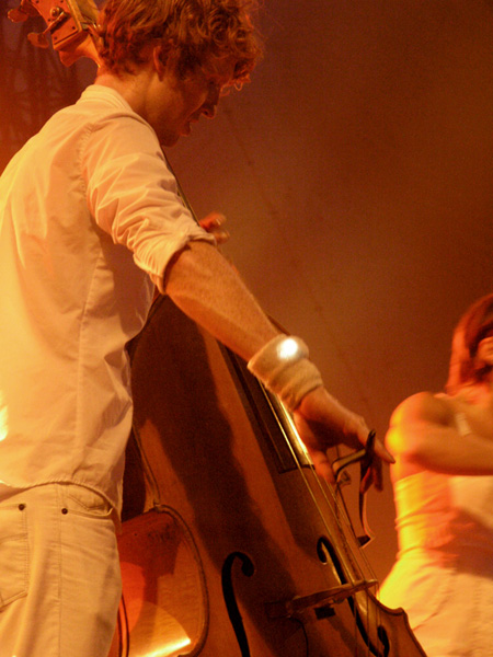 Ale nie trzymamy się układu chronologicznego, więc jest o czym jeszcze mówić. Do mocniejszych momentów Dour należało kilka ciężko klasyfikowalnych koncertów. Przede wszystkim Battles w piątek. O ile wydane w Warp epki „B” i „C” postawiły ich w pierwszym szeregu gitarowego eksperymentu, to zagrane w Dour nowe kompozycje mogłyby zapewnić im podobne miejsce we fusion-jazzie. Desperacki rytm prowadzącego grupę perkusisty John’a Stanier’a, zderzony z pracą klawiszy i gęstymi pajęczynkami, granymi nieraz aż na trzy gitary brzmiącymi arcy-nierockowo; ujętymi w długie kompozycje, w których końca intensyfikacji widać nie było – to wszystko złożyło się na jedno z najbardziej wymagających i frapujących wydarzeń w Dour. Będzie się działo na ich nowej płycie, będzie. W czwartek porcję surrealizmu zafundowali Messer Chups, którzy swoją horrorowo-westernową muzykę okrasili jeszcze niesamowitym image’m. W sobotę takim „dziwnym” przeżyciem był Fennesz, którego występ udowodnił, jak ważne dla odbioru muzyki jest oświetlenie sceny. Zatopiony w głębokich fioletach i zarysowany jedynie ciemną sylwetką, robił Fennesz niesamowite wrażenie swoją potężną muzyką. W niedziela w tej zaproponowanej przeze mnie kategorii to doświadczenie znacznie lżejsze, czyli Kanadyjczycy z Bell Orchestre. Ubrany w biel zespół, za pomocą instrumentów smyczkowych i dętych, osadzonych na jazzowo-rockowej sekcji rytmicznej, bardzo plastycznie wyczarował delikatną, skandynawską aurę - raz przywodzącą na myśl Jaga Jazzist, raz Sigur Ros lub Mum.