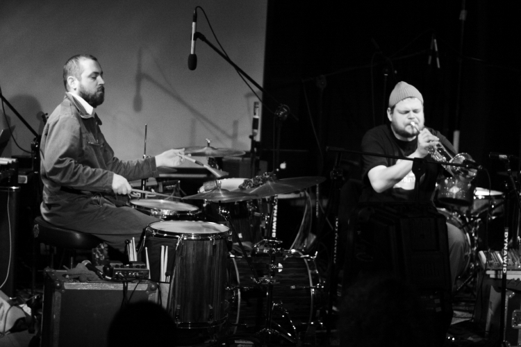 Po czym na scenie znalazł się Mikrokolektyw. Artur Majewski i Kuba Suchar, grając już bodajże 5 lat w duecie na perkusję, trąbkę, minimoog i sampler stali się już absolutnie oryginalnym, mówiącym własnym językiem duetem. Wspaniały koncert. W maju ma ukazać się ich płyta. Nareszcie!