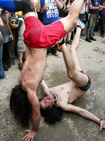 Pierwszy dzień festiwalu zawsze jest niewdzięczny dla zespołów, którym przychodzi go otwierać. W tym roku wielu fanom przyszło więc usłyszeć echa koncertu Sic Alps z kolejki po festiwalowe opaski, a koncert The Fall na głównej scenie pozbawiony był atmosfery skupienia, za to publika pełna była ludzi dopiero orientujących się w terenie. Podwójnie szkoda, gdyż perkusyjno-gitarowy Sic Alps, który tym razem zagrał jako trio, naprawdę ciekawie dekonstruuje folkowe i psychodeliczne dziedzictwo Ameryki lat 60-tych, a anty-idol w osobie Marka E. Smitha na scenie nie pozostawia wątpliwości, dlaczego już trzecią dekadę się o nim mówi. W międzyczasie na scenie Vice, czy też raczej przed nią, zagrał Monotonix - większe wrażenie od ich wygłupów robi na nas to, że im się ciągle chce.
