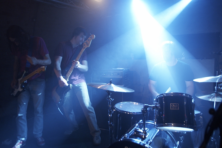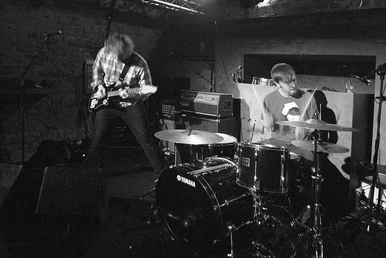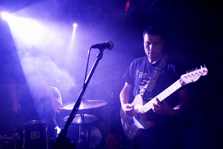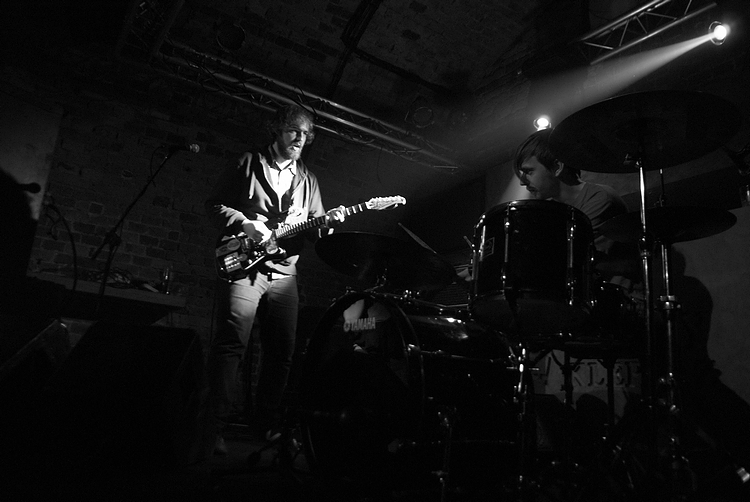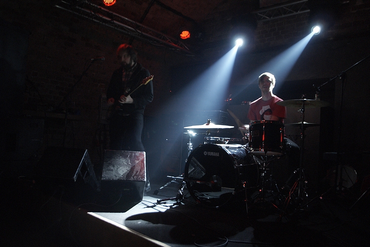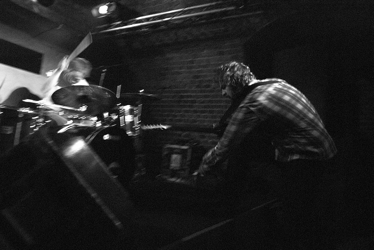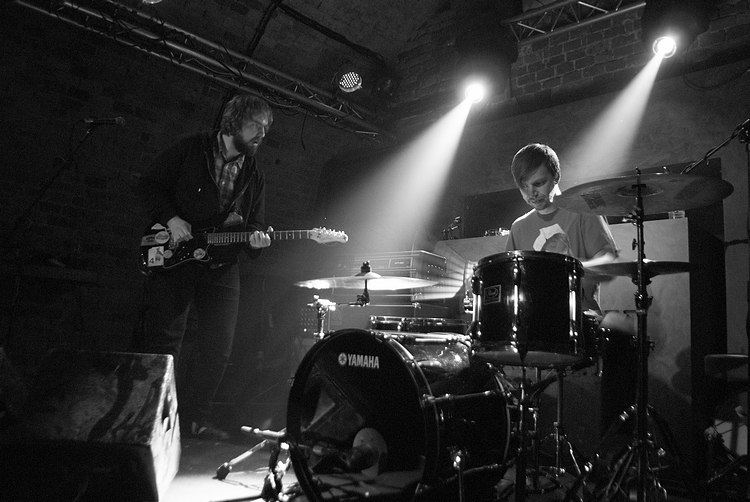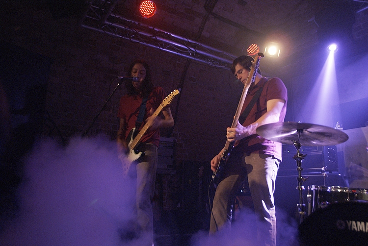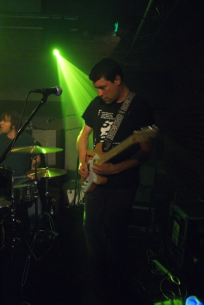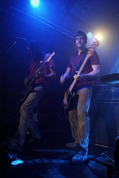 Około 22 w oparach dymu scenicznego, ledwo widoczni zainstalowali się Panowie z Polvo.