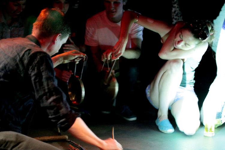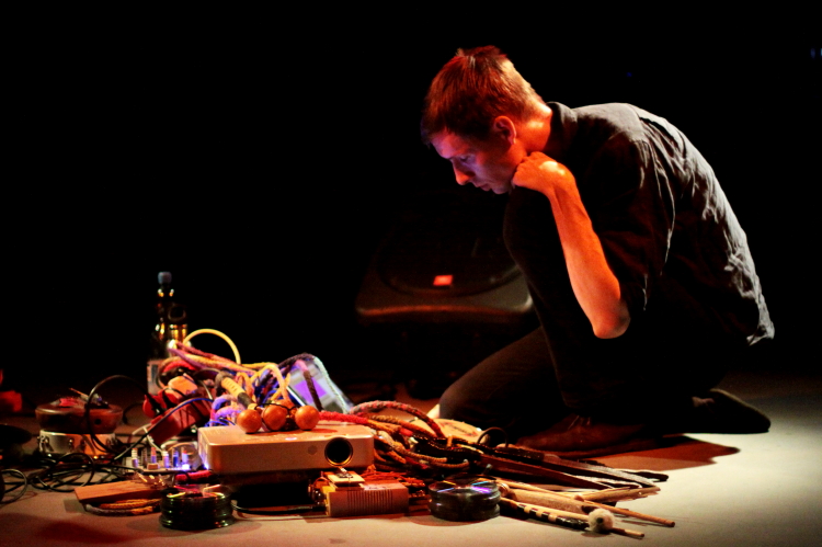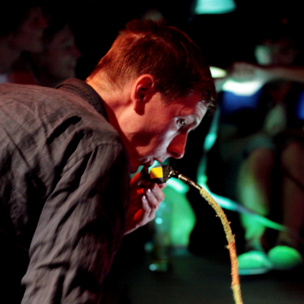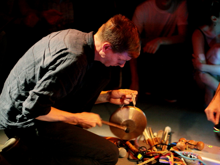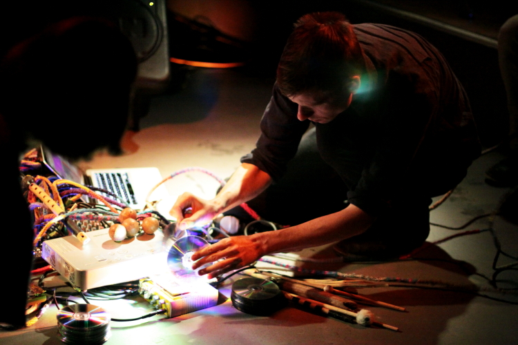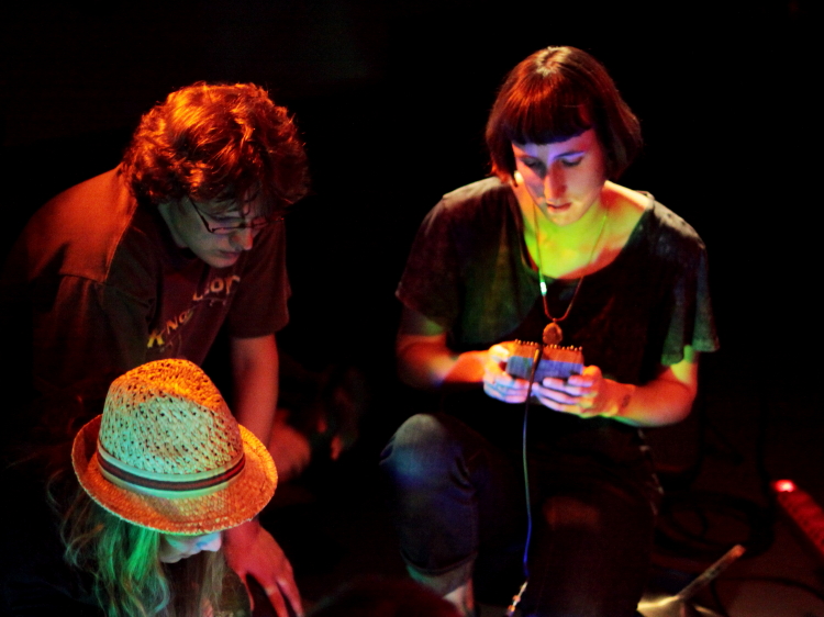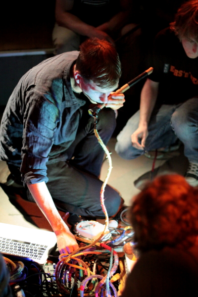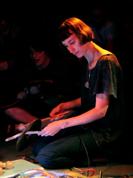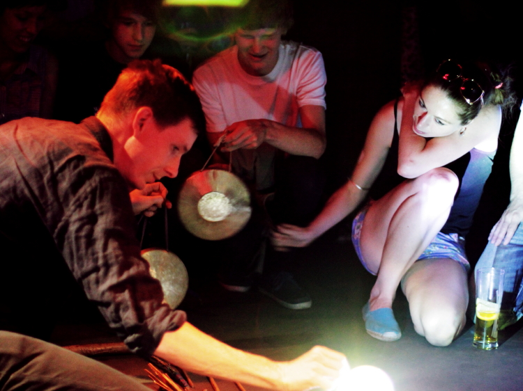 Lucky Dragons dosłownie rozłożyli ekwipunek na środku sali i po kilku minutach grania w dwójkę, rozpoczęli swą inkluzywną sesję. Choć publiczność, włączana w tworzenie muzyki, wiedziała co ją czeka, to zdumienie wywoływały narzędzia współnego tworzenia. Obok perkusjonaliów, te najważniejsze dalekie były od tradycyjnych instrumentów. Kable generujące elektroniczny puls dopiero, gdy osoby je trzymające chwyciły się za ręce, są chyba najlepszych przykładem. Lucky Dragons prowadzili i kontrowali przebieg kolektywnego muzycznego tworu, który krystalizował się do rytmicznej, transowej opowieści. Przyszło mało ludzi, ale przez to wieczór był bardzo kameralny.