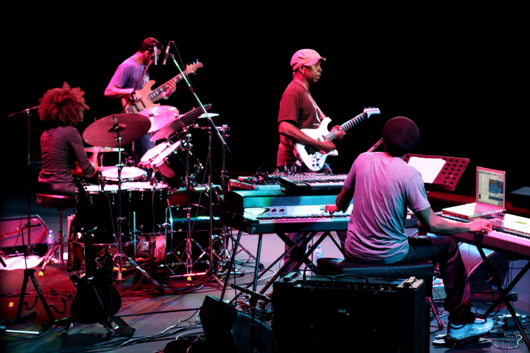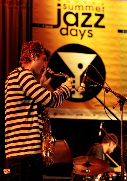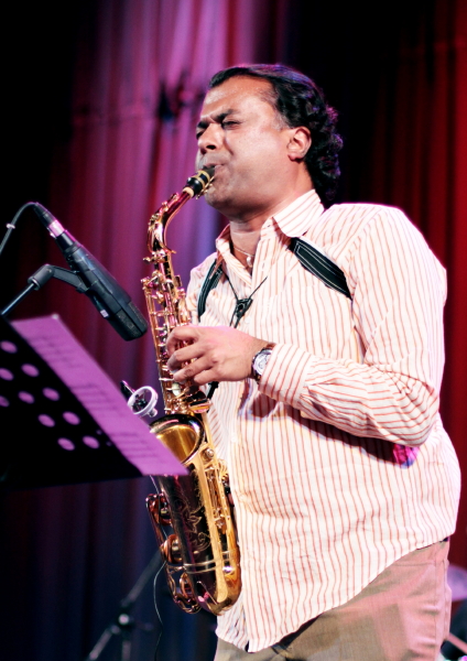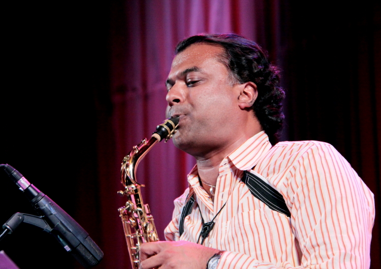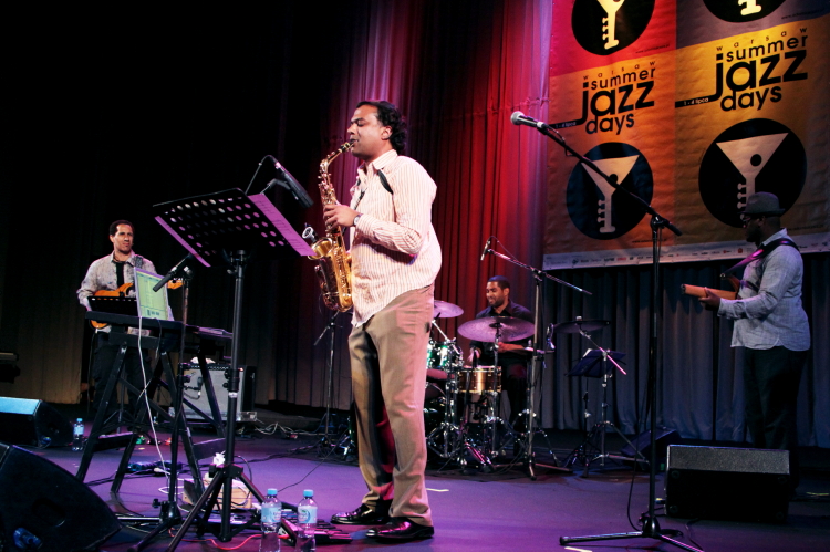 Kolejny koncert był dla mnie główną atrakcją wieczoru i pokładane nadzieje zasadniczo spełnił. Projekt Rudresh Mahanthappa's Codebook (zatytułowany tak na potrzeby festiwalu, sam Mahanthappa nazywa go Samdhi) to inicjatywa saksofonisty szybko wspinającego się na jazzowy piedestał. Mahanthappa, podobnie jak występujący dzień wcześniej Iyer, jest nie tylko utalentowanym kompozytorem, lecz też cenionym side-manem i chociażby dzień wcześniej grał w Montrealu z Jackiem DeJohnette. Na WSJD zaprezentował swój najbardziej elektryczny zespół, łączący jazz-rockowy idiom z kanonami muzyki hinduskiej. Jednak w nieoczywisty sposób i pod powierzchnią, gdyż poza jednym sitarowym intro basisty nie było wyraźnych estetycznych odniesień. Ogólne wrażenie zdecydowanie pozytywne, choć słychać było, że zespół gra ze sobą rzadko, a utwory na laptop i saksofon były zbyt ciasno związane elektroniką. W kolejnym numerze PopUp znajdziecie wywiad z Rudreshem.