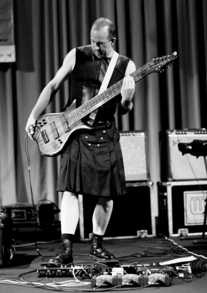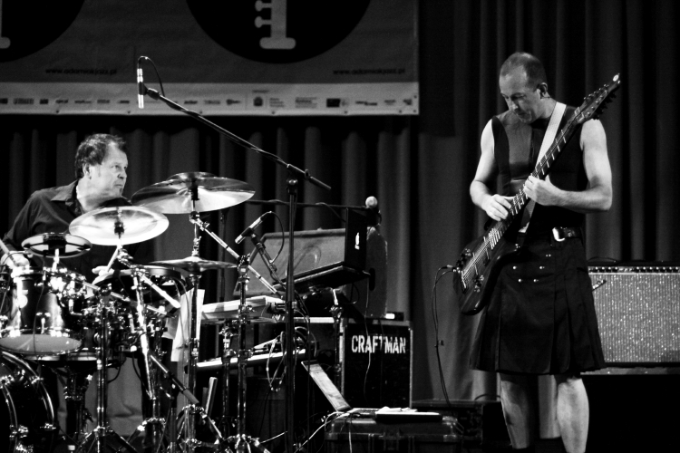 Trzeci dzień (w galerii od czwartego rzędu miniatur) przyniósł stylistyczny rozstrzał i dwa kompletnie różne spojrzenia na muzykę. Najpierw wystąpiły dwie formacje spięte hasłem "Crimson Garden". TU, czyli duet Trey Gunn / Pat Mastelotto w przeszłości zbliżał się do jazzowego idiomu, prog-rockowy trzon muzyki otwierając na fusion, elektronikę, zmutowane world music i improwizację. Ich koncert, z Mastelotto na rozbudowanym zestawie i z laptopem, z którego wylatywało zdecydowanie za dużo sampli, oraz Gunnem na dwunastostrunowej gitarze, zasygnalizował różnorodność pomysłów duetu. Bardziej odpowiadało mi mniej lub bardziej udane sięganie po nowsze kanony niż rzemieślniczne łojenie ramach wyznaczonych przez ich rodzimą formację.
