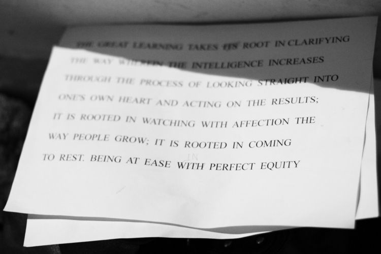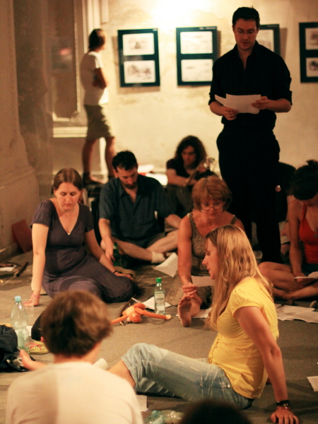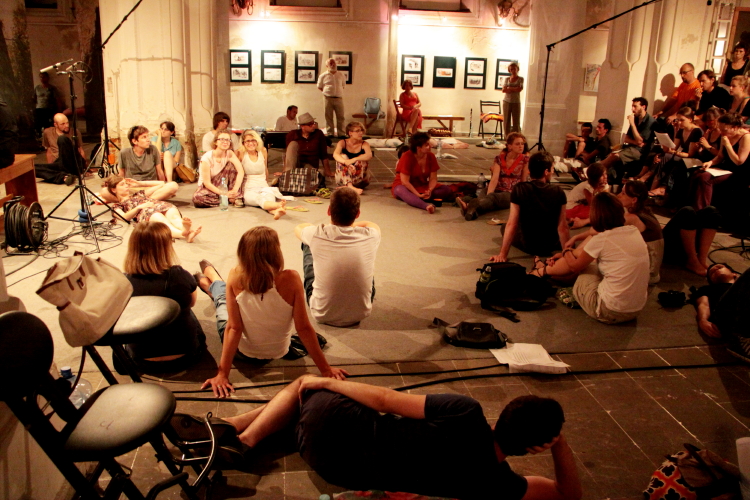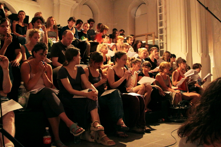 „The Great Learning” w Sejnach zawierało paragrafy numer 1, 4, 5, 7 (z siedmiu ogółem) dzieła Cardew, na swój sposób opartego na tekstach Konfuncjusza. W warsztatach wzięło udział ponad 50 osób, głównie z Polski i Wielkiej Brytanii, ale były też osoby z Serbii i Izraela. Przestrzeń Synagogi zaaranżowana została zasadniczo z myślą o wykonawcach, przemieszczających się w miarę przebiegu performansu, słuchacze zaś odnajdywali dla siebie dogodne miejsca. W pierwszej części, najbardziej statycznej, z powtarzanymi monodeklamacjami, minimalistycznymi klawiszami, delikatnymi solami gwizdków i fujarek, wykonawców dręczyła chyba jeszcze trema. W część kolejną, rozpoczętą kanonadami walenia w poduszki, wkradło się trochę chaosu, jednak miała ona swoją moc. Następnie przekształciła się ona w punktualistyczny, selektywny dźwiękowy pejzaż, który wypadł świetnie, by po chwili pogrążyć się w hałaśliwej improwizacji. Kolejne części stały się jednym strumieniem. O ile choreograficzne pomysły Cardew były nieco pretensjonalne, to wokalne interakcje między dwójką śpiewaków w rogu Synagogi a resztą wykonawców operujących w jej centrum rozwijały się świetnie. Finał to transowa, medytacyjna gra głosów w Synagodze, która wówczas przypominała już saunę. Paradoksalnie, choć wykonawcy stopniowo oderwali się od zewnętrznych bodźców, występ trwał 3,5 godziny, czyli o ok. godzinę krócej, niż planowano.