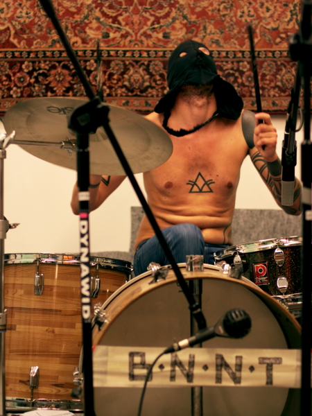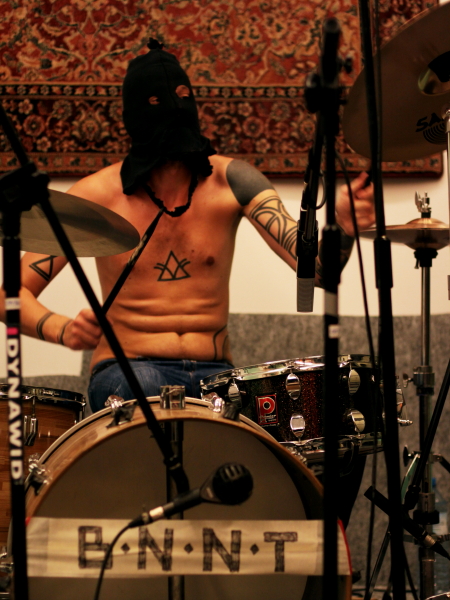 Po Samorządowcach zagrali Konrad Smoleński i Daniel Szwed, aka BNNT, czy też Brownnote. Ich występ był nawiązaniem do premiery płyty "Niuniuni gra na Psie", którą nagrali Smoleński z Etamskim i przy pomocy Szweda właśnie. BNNT to podobnie jak "Niuniuni..." audioperformance, jednak nie drążący szmery i szumy, ale uderzający zmasowanym atakiem przesterowanego basu-rakiety Smoleńskiego i wyrazistych bębnów Szweda, grającego przecież w Woody Alien. Panowie natężeniem dźwięku wywołali początkowo konsternację wśród części publiczności, chyba większą niż wizerunkiem. Ich zwalisty dźwiękowy przemarsz dojrzewał aż do intensywnego finału. BNNT to pinkpunkowe monstrum, rzecz wybitnie do grania i przeżywania na żywo, choć ponoć koncert stać się ma kolejnym wydawnictwem. Będziemy się przyglądać.