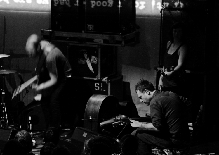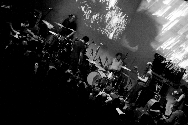 Ponad 800 osób szczelnie wypełniło poznański Eskulap, by doświadczyć pierwszej i prawdopodobnie jedynej okazji zobaczenia w Polsce Godspeed You! Black Emperor. Gorąc i ścisk trochę przeszkadzały w doświadczaniu epickiej muzyki kanadyjskiej formacji, za to zaskakująco dobrze zabrzmiała przypominająca bunkier sala Eskulapa. Koncert, jak na całej trasie zresztą, otworzyła rozległa dźwiękowa plama, po której GY!BE zaprezentowali przekrojowy set. Nie zabrakło w nim najbardziej rozpoznawalnych utworów grupy, jak Storm, Static, czy Moya, czasem przyciętych lub zdeformowanych, a usłyszeliśmy też kapitalny, nie opublikowany dotychczas Albanian.