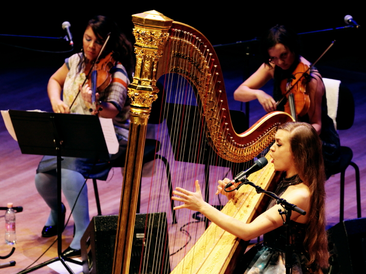 Gdy zobaczyłem gmach Művészetek Palotája, kilkuletniego Pałacu Sztuk w Budapeszcie, zrozumiałem dlaczego Joanna Newsom kończy styczniową minitrasę właśnie tam, a nie np. nad Wisłą. Zagrała ją z zespołem, z którym gra od premiery ostatniej płyty (Ryan Francesconi - gitara, tambura, flet i inne; Neal Morgan - perkusja, wokal; Andy Strain - puzon i dwie skrzypaczki, których personaliów nie zapamiętałem). Nowoczesny, wielofunkcyjny obiekt z kapitalną, potężną salą koncertową zrobił wrażenie także na muzykach. Zwłaszcza, że Joanna otrzymała dość wyjątkową harfę i otworzyła koncert niestarzejącym się Bridges and Baloons. Później usłyszeliśmy oczywiście głównie materiał z "Have One on Me" - utwór tytułowy, Easy, You and Me, Bess, Soft as Chalk, Good Intentions Paving Company - ten ostatni wyróżnił się otwartym, jazzującym finałem. Jak widać, z czasem sama Joanna przyznaje, że pierwszy dysk albumu jest najlepszy.