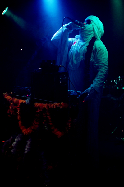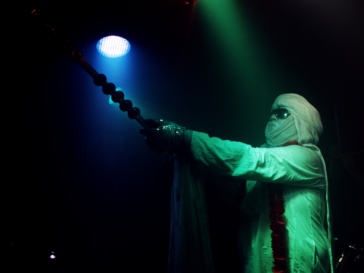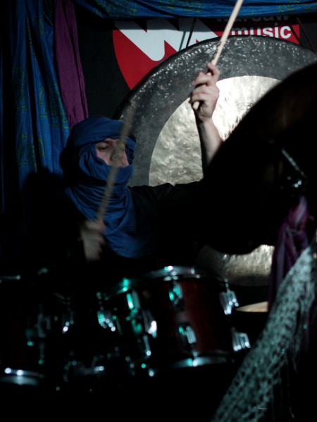 Pod względem scenicznej celebry Master Musicians of Bukkake stoją w jednym szeregu z Sunn0))), ale jest ich więcej. Siedmiosobowy kolektyw ze Seattle dotarł do Polski po raz pierwszy promując świeżo wydany album "Totem 3", zamykający trylogię, która ten projekt zamieniła w regularny zespół. I bardzo dobrze, bo ich szeroko zakreślona (dwie perkusje, dwie/trzy gitary, skrzypce, dwa syntezatory, wokal), przesączona ezoteryką i duchowością psychodelia jest muzyką sięgającą do trzewi i wyjątkową. Koncert MMoB zdaje się spektaklem, ale absolutna powaga, z jaką zespół podchodzi do scenicznej kreacji i symboliki sugeruje, że nie o granie ról tu chodzi, lecz o, a co tam, pewną transgresję. W Powiększeniu usłyszeliśmy głównie materiał z nowej płyty, domknięty przez kraut-rockowy Elogia de la Sombra. Poszczególne długie utwory różniły się szczegółach, pokazywały tak jakby różne perspektywy, z którym MMoB spoglądają na swoją muzyką i komunikują się z odbiorcami. Zarazem budowały one konsekwentnie nastrój tego doskonałego koncertu. Tylko szkoda, że odwagę spotkania czy wręcz odkrycia Master Musicians of Bukkake miało mniej niż 100 osób.