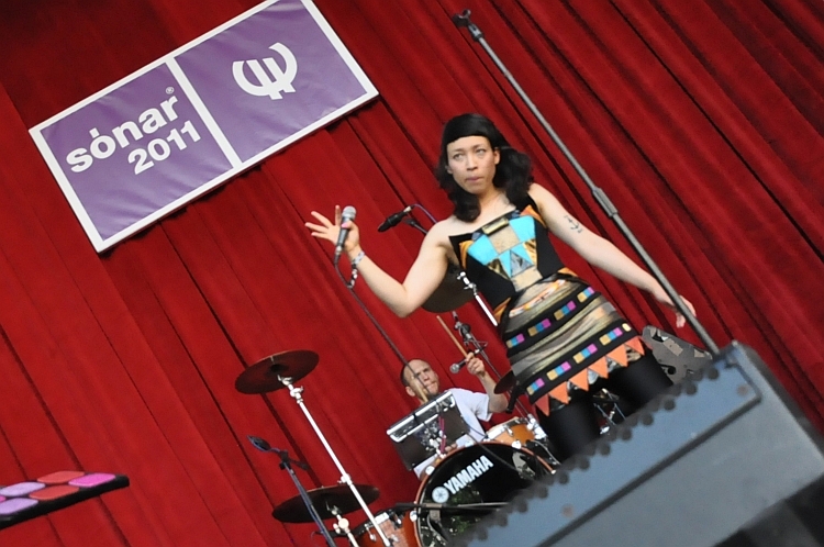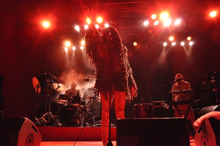 Objawieniem części wieczornej była francuzka Yelle, która pojawiła się na scenie w wielkim włochatym stroju, potem zrzucając go i zostając na scenie w obcisłej i seksownej czerwonej panterce. Jej elektro wspomagane przez dwóch bębniarzy (jeden z nich jednocześnie był klawiszowcem) brzmiało świeżo i porywczo, co potwierdziło (po Oy), że Francuzki mają smykałkę do elektronicznej muzyki (co wiadomo nie od dziś).