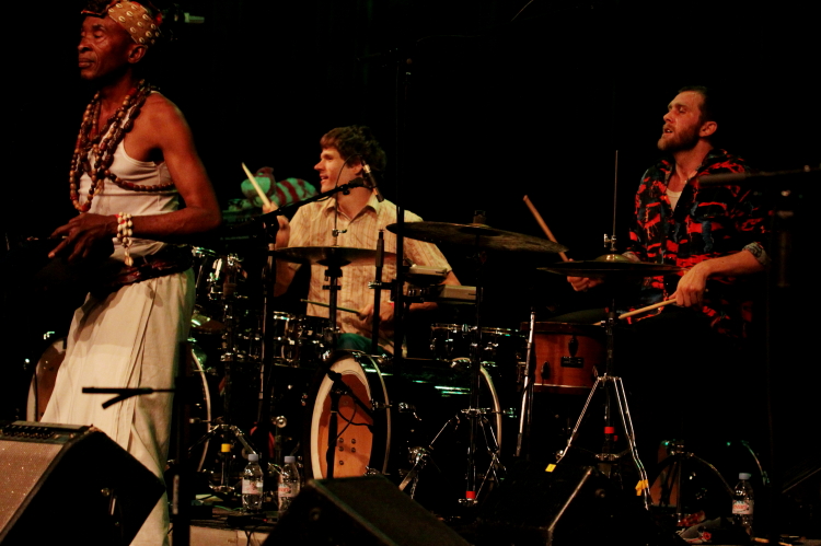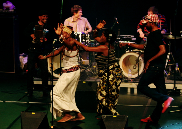 Gigantyczny skład tworzył zdumiewającą, momentami trudną do ogarnięcia dźwiękową machinę, przesuwającą się w imponującym rytmicznym powiązaniu. Utwory afrykańskie nabrały nowego odcienia transu, bliskiego krautrockowej motoryce, albo hipnotyzmu Boredoms. Utwory muzyków zachodnich nabrały zaś ciepłego pulsu, może za wyjątkiem numeru Wildbirds & Peacedrums, w którym Mariam Wallentin na wokalu była wprost fantastyczna, a zespół dotarł w najcięższe rejony tego wieczoru. Zasadniczo jednak koncert był roztańczoną, radosną bombą. Nieszczególnie pasowało do niego miejsce - choć nagłośnienie było bardzo dobre, dźwięk pełny, ale pozwalający wychwycić składowe brzmienia, to jednak słuchanie tego składu na siedząco było dość dziwne. Na szczęście dało się stać i pląsać w sporych przejściach oraz z boku sceny, z czego z reguły subordynowana niemiecka publiczność przynajmniej częściowo skorzystała. Ale to drobiazg, a zobaczenie tego projektu na własne oczy będę pamiętał długo.