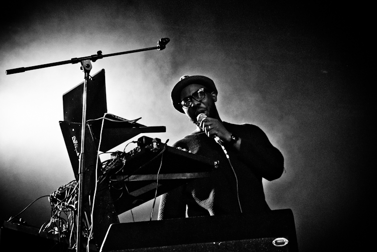 W trakcie powrotu z kolejnej wycieczki do namiotu zerknęliśmy jedynie na garstkę wytrwałych, którzy brodząc w grząskiej mazi gromadzili się pod sceną w oczekiwaniu na koncert Suede. Sami wybraliśmy opcję bardziej nas interesującą i zarazem zgodną z instynktem samozachowawczym – udaliśmy się na trzy elektroniczne koncerty, które odbywały się w jednym namiocie i nie wymagały przemieszczania się w deszczu. Rozpoczął Nosaj Thing, reklamujący swój występ jako "visual show", które niestety nie zachwyciło. Jak zwykle zaczarowały za to tworzone przez Kalifornijczyja dźwięki. Usłyszeliśmy zarówno melodie z debiutanckiego albumu "Drift", jak i epki "Views/Octopus". Minimalistycznie i uroczo, doskonałe preludium do opery, jaką chwilę później urządził na scenie Flying Lotus.