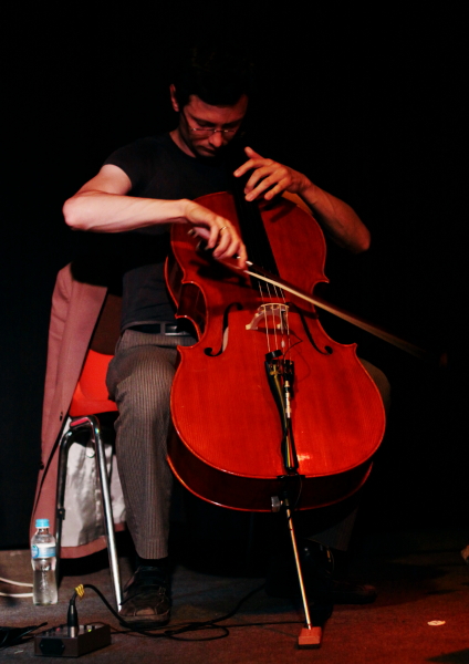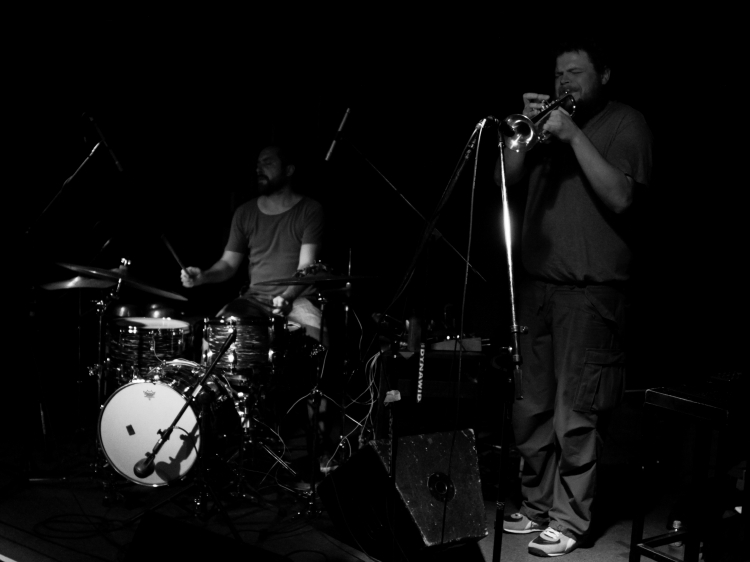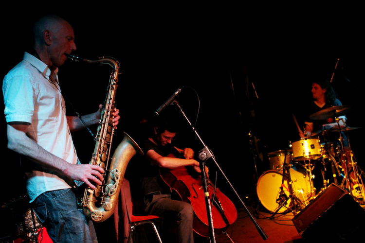 Drugie na scenie trio Osaka Vacuum (Ray Dickaty - saksofon; Mikołaj Pałosz - wiolonczela; Paweł Szpura – bębny) to na pierwszy rzut oka kolejny warszawski skład, ale tak naprawdę najwyższej próby improwizująca formacja, wnosząca do pejzażu stołecznej sceny nowy i ważny element - muzyki łączącej free jazz z europejską tradycją improwizacji. Tworząca muzykę o skromnym, lecz pełnym brzmieniu i wymagającą skupienia. Ewoluującą od post-coltrane'owskich momentów z wiolonczelą graną pizzicato, do pasaży każących się zastanowić, którą z linii w głośnikach tworzy saksofon, a którą wiolonczela, z czujnym i wrażliwym Pawłem Szpurą, który od dłuższego czasu zachwyca mnie chyba na każdym koncercie, na którym go widzę. We wrześniu grupa wydaje album w wytwórni Slowdown Records Maćka Trifonidisa i jest na co czekać.