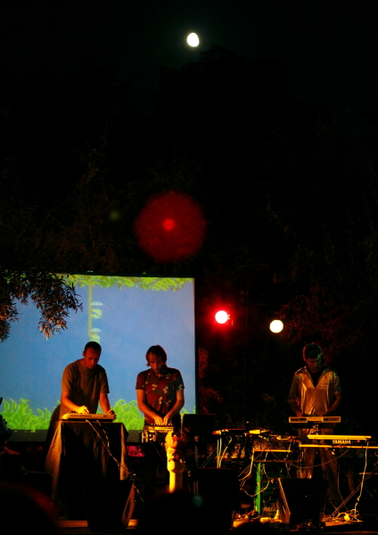 Występujący po nich zespół Xenony grał bez bagażu doświadczeń, przeciwnie, był to chyba jego drugi koncert, a materiał studyjny jeszcze się nie ukazał. Założony przez Piotra Bukowskiego (Stwory) projekt przyjął formę trio (PB + Karol Koszniec & Bebech Górski) z pierwiastkiem żeńskim (wizualizacje). Gra muzykę nawiązującą do 8-bitowej elektroniki, chip tune'ów i siermiężnych blipów. Trawestującą muzykę do gier komputerowych epoki Atari/ Commodore i wracającą do brzmień lat 80-tych po skonsumowaniu doświadczeń post-rocka. Xenony pokazały potencjał, ale też surowość muzyki, koncepcji i wykonania. Swoje dołożyły też problemy ze sprzętem, szwankującym w wieczornej rosie. Bardzo fajna rzecz, ale jeszcze kilku koncertów potrzeba, by okrzepła, nabrała kształtu i rumieńców. Wprowadzoną przez Bebecha sceniczną stylizację polecemy zaś całej grupie!