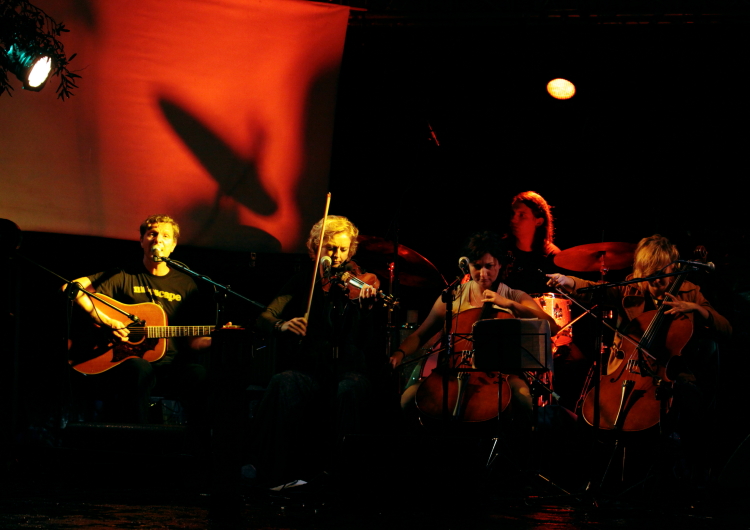Gdy deszcz osłabł, na scenie pojawili się Cieślak i Księżniczki (znowu zaczęło mocniej padać w połowie koncertu), wsparci w kilku utworach przez Pawła Szpurę. W przypadku tego koncertu raczej mówić można o kolejnym potwierdzeniu klasy - melancholijna, na swój sposób barokowa, ale z umiarem i wyczuciem, muzyka zespołu jest po prostu kapitalna. Kolejny koncert dała Ścianka, czy też właściwie Ścianka Quintet (w zastępstwie za chorego Arkadego Kowalczyka zagrał Paweł Szpura), bowiem usłyszeliśmy materiał z płyty "Secret Sister", tutaj również potraktowany jak soundtrack - kolejność utworów została zachowana itd. W samej muzyce jest tej filmowej dramaturgii tak dużo, że osoby nie znające genezy tej płyty bez problemu jej ilustracyjnego charakteru domyśliłyby się same, choć jej przewrotnej abstrakcyjności już pewnie nie. "Secret Sister" AD 2011 było dość szorstkie, choć miejscami pastelowe i zabrzmiało naprawdę dobrze - co w polowych warunkach nie było wcale pewne. I właśnie ta część wieczoru zgromadziła najbardziej liczną publiczność, już pod przecierającym się niebiem.