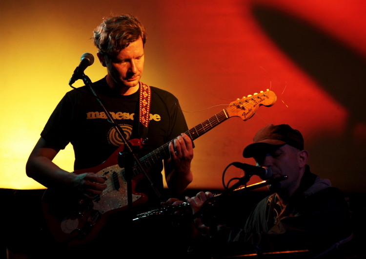 Szóstą odsłonę tegorocznego Lado w Mieście przejęła oficyna My Shit In Your Coffee, dowodzona przez Maćka Cieślaka, który tego wieczora wystąpił w trzech formacjach. Ale zanim do tego doszło, to lunęło po raz pierwszy, a jako pierwszy zagrał zespół Enchanted Hunters. Dla cichej i kruchej muzyki trio koncert pod otwartym niebem to niezbyt sprzyjające warunki, ale kto się na niej skupił, ten dostrzegł ogromny potencjał. Zespół gra piosenki na pierwszy rzut oka proste i krótkie, ale ze zdumiewającą wrażliwością operuje dźwiękowym detalem i nastrojem. Zmiany instrumentarium poszczególnych utworów były wolne od efekciarstwa i nadawały głębszych barw kameralnej, nibyfolkowej muzyce grupy. Dobre, czekam na płytę. Podobnie zresztą jak w przypadku kolejnego na scenie Michała Bieli, który od dłuższego czasu koncertami solowymi, a czasem w trio z Raphaelem Rogińskim i Pawłem Szpurą, przeplata działalność Kristen, choć bez namacalnego zapisu. Jego song-writing jest bardzo ciekawy i pełen nieoczywistych akcentów, czasem wydaje mi się tak jakby odkryty z pozycji post post-rockowych. Nie nowoczesny, ale też daleki od zapatrzenia w "tradycję". Tym razem Biela zagrał jednak tylko cztery utwory, ponieważ lunęło znowu i to srodze.
