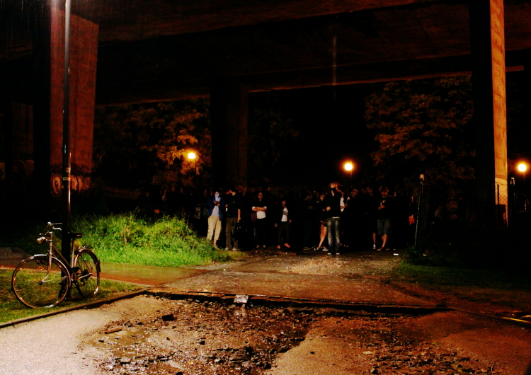 Ostatni koncert zagrała formacja .^.. (PTKCSS), której pierwszy koncert odbył się niemal równo dwa miesiące wcześniej w niedalekim zagajniku. Na tym koncercie muzyka grupy - spoglądająca, czy może wyobrażająca sobie prymitywne etno przez pryzmat minimalizmu, rozpisanego na głosy, drobne, lecz treściwe gesty gitar i przeszkadzajki - wydała się dojrzalsza. Mimo szczególnej formy i formuły, .^.. (PTKCSS) funkcjonują w ramach piosenek i sprawdza się to świetnie. Po pierwszym koncercie miałem wrażenie, że to ponadprzeciętnie dobra ciekawostka, teraz sądzę, że zespół ze świetnym pomysłem na siebie, który to pomysł post factum wydaje się genialny w swej prostocie - ale to dzięki doskonałemu wykonananiu.