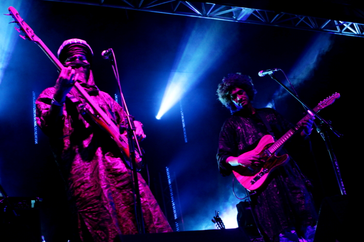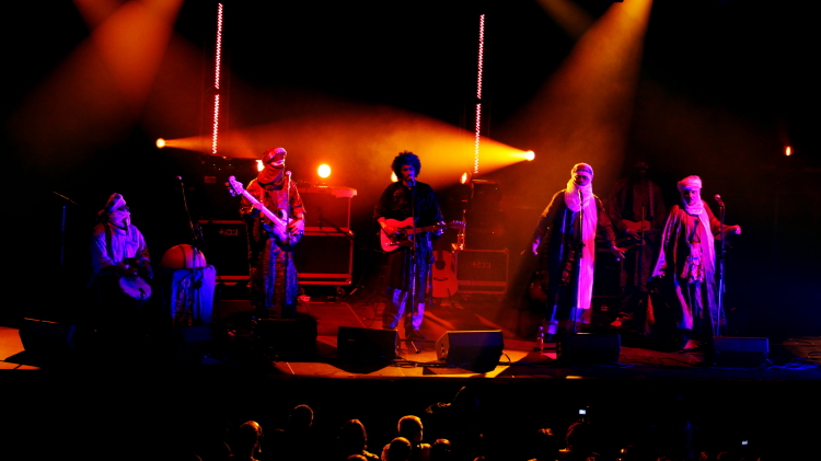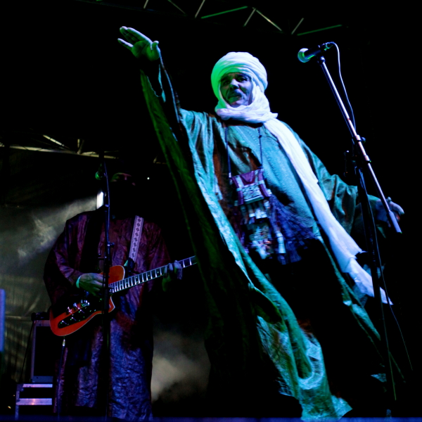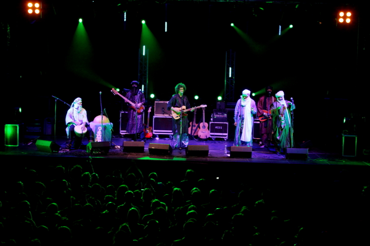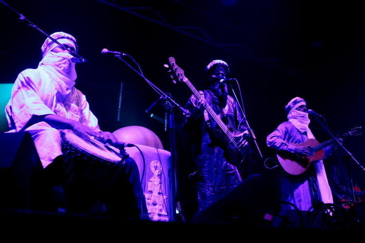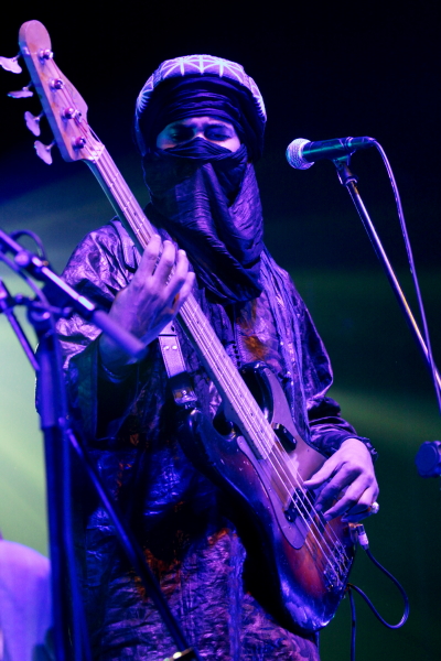 Pisząc o "Tassili" upierałem się, że w przypadku Tinariwen duże zmiany nie są potrzebne, wystarczą delikatne modyfikacje. Warszawski koncert to potwierdził, pokazując w pełni piękno majestatycznej, choć wykorzystującej proste środki muzyki Tinariwen. Przez półtorej godziny słuchaliśmy w sumie wariacji na ten sam temat, pulsującego pustynnego bluesa nabierającego w koncertowym wydaniu kolorów i tanecznego groove'u. Delikatne zróżnicowanie jego odcieni, czy to przez ograniczenie do quasi-akustycznego występu solo lidera zespołu, Ibrahima Ag Alhabiba, czy przez funkujący utwór z tekstem rapowanym przez drugiego w hierarchii wokalistę, Abdallaha Ag Alhousseyni, wystarczyło dla urozmaicenia motorycznego, wibrującego trzonu muzyki Tinariwen. A nawet podkreśliło jego walory. Czuć w tej muzyce niezwykłe skupienie, jej jednorodność jest tak naturalna jakby była efektem ewolucji. Choć bez Ibrahima Ag Alhabiba zespołu zapewne by nie było, to jednak przecenić roli pozostałych muzyków nie sposób. Tak niezwykły groove stworzyć w tak skromnej sekcji rytmicznej (z leworęcznym basistą grającym na odwróconej do góry nogami gitarze dla praworęcznych - on musi tak grać od małego, nie ma innej opcji) nie jest prosto, a pulsy schowanego w tle gitarzysty rytmicznego ocierały się o krautrock, ani przez chwilę nie tracąc afrykańskiej osobowości. Zespół też doskonale radził sobie gdy na scenie nie było Ibrahima, który chyba już się oszczędza na trasach (jeszcze półtora roku temu grał całe koncerty). Jednym zdaniem - fantastyczny, inspirujący koncert hipnotyzującej muzyki. Niejeden zespół świata zachodniego mógłby od Tinariwen uczyć się, jak pozostać sobą po odniesieniu sukcesu.