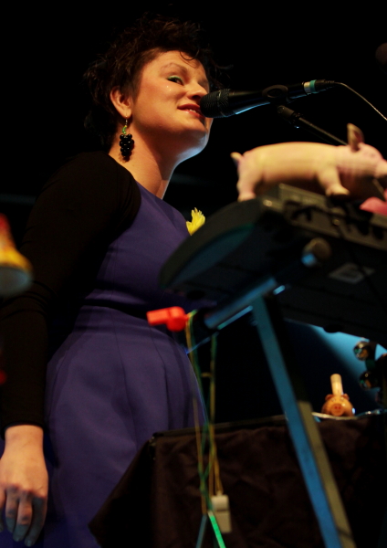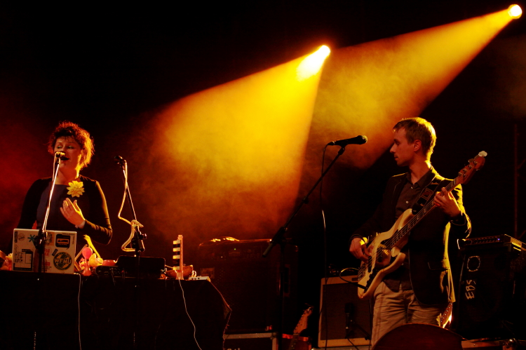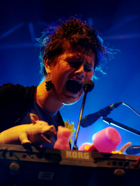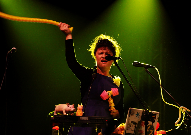 W roli supportu wystąpiło trio Dagadana, któremu kibicuję od pierwszej, wydanej własnej sumptem epki i z radością stwierdzam, że zespół ciągle zwyżkuje. Zwłaszcza na żywo, bo nawet jeśli na płytach Dagadana są dość grzeczni, radio-przyjaźni, to na koncertach z mariażu słowiańskiego folku, popu, nujazzu i elektroniki wydobywają cały potencjał. Ich nowoczesna słowiańskość, zwłaszcza w wokalach, jest istotnym atutem, a naturalność na scenie ujmuje - rozdawanie publiczności świszczących rur i dyrygowanie klaskaniem za pomocą zabawek na koncercie dla 50 osób (jak rok, dwa temu) to jedno, porwanie w ten sposób kilkuset osób w Palladium to drugie. Ale bez świetnej muzyki rekwizyty by nie pomogły. Brawo, moim zdaniem na płytach Dagadana powinni też sobie pozwolić na więcej wariactwa.