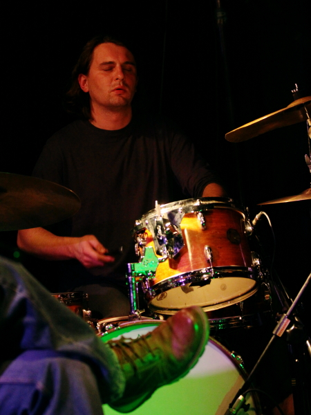 Muzyczne otwarcie dwudniowych 15. urodzin wydawnictwa Czarne otworzył zespół Stwory, który od kilku lat gości na naszych łamach przy każdym swym uaktywnieniu, co od dłuższego czasu oznacza sporadyczne koncerty. Tym razem, po znów niemal rocznej przerwie w aktywności, Stwory zaprezentowały bardziej rozważną i spokojną muzykę niż rok temu. Dzięki temu nie tak jednoznacznie kojarzącą się z Tortoise (i dobrze!), choć ciągle bliską chicagowskiemu, post-rockowemu idiomowi. Usłyszeliśmy bodajże 4 dość długie numery, zagrane fajnie, choć brakowało luzu, który pojawiłby się przy bardziej regularnej działalności. Panowie, zróbcie z tego jakiś (choćby mini) album.