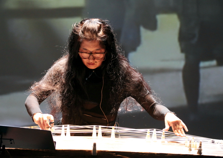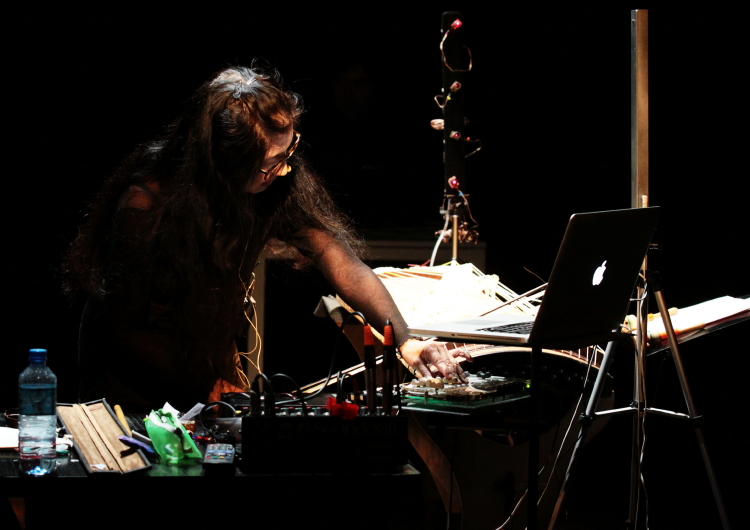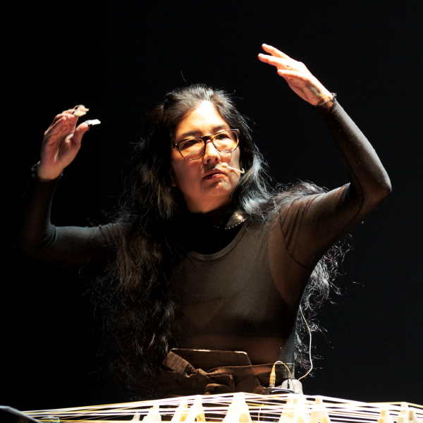 Miya Masaoka, japońska artystka zajmująca się improwizacją i sound-artem, przebywała w Warszawie na rezydencji artystycznej, którą spięły klamrą dwa koncerty. Pierwszy, na Chłodnej 25, był koncertem improv z warszawskimi muzykami (niestety nikomu od nas nie udało się dotrzeć), drugi, po dwóch tygodniach, miał zaplanowaną, dwuczęściową strukturę. W pierwszej części zobaczyliśmy Masaokę solo, w drugiej utwór przez nią przygotowany z kwartetem warszawskich muzyków.
