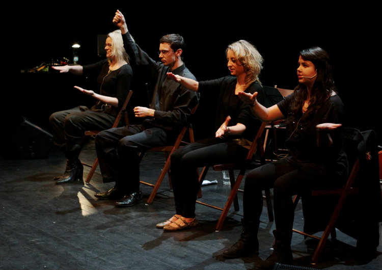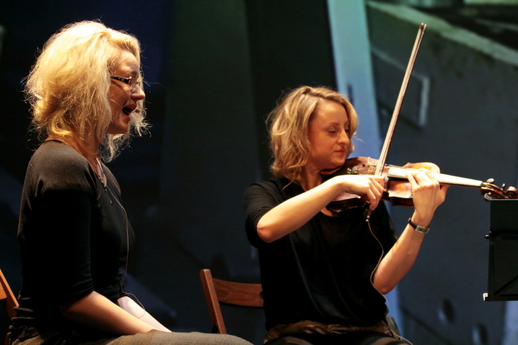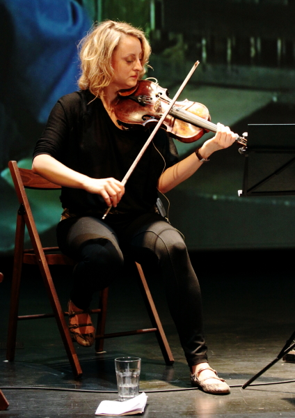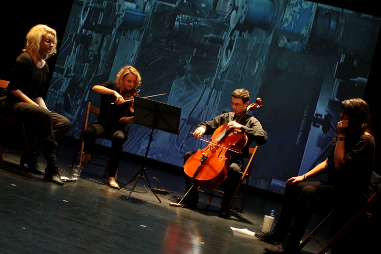 W drugiej części koncertu koto zniknęło, a Masaoka przeistoczyła się w reżyserkę utworu wykonywanego przez kwartet w składzie: Julia Kubica (skrzypce), Mikołaj Pałosz (wiolonczela), Joanna Sokołowska (głos), Julia Szproch (głos). Był on rezultatem jej pobytu w Warszawie i swoistym klockiem większej budowli, projektu związanego z fabrykami, ich obrazami, odgłosami (mechanicznymi i ludzkimi). Industrialny motyw (obecny też w wideo), kiedyś sztandarowy dla modernizmu, teraz wydał się bardzo retro. Masaoka zrealizowała nagrania w pięciu warszawskich fabrykach, a bez gugla ciężko (przynajmniej mi) wymienić pięć prawdziwych fabryk ciągle działających w stolicy. Sama kompozycja zaczęła się reichowsko, od rozjeżdżających się wokalno-gestykulacyjnych cykli mechanicznych onomatopei, po czym przeistoczyła się w muzykę na ścinki głosów, linie śpiewu i sporadyczne monologi otoczone dwoma splecionymi smyczkami. Interesujące, ale jednak w takim jednorazowym kontakcie udało mi się wychwycić tyle, że ciężko mi postrzegać ten utwór inaczej niż jako ciekawostkę. Jeśli ktoś ma refleksji więcej, to chętnie wysłucham.