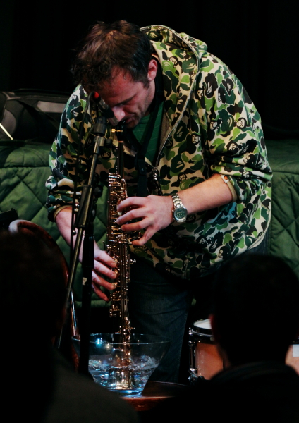 Niestety z następnego koncertu, jaki dał duet Arszyn / Duda musiałem wyjść kilka minut przed końcem, by dotrzeć na drugi koniec miasta ostatnią kolejką. To, co usłyszałem utwierdza mnie jednak w przekonaniu o nośności koncertowej formuły tego duetu, odchodzącej od perkusyjno-dętej płyty w stronę elektroakustycznych krajobrazów. Stukoty, szmery, trzaski, oscylacje i fale hałasu Arszyna kontaktują się z zagęszczoną, ale cichą grą Dudy, z której melodie się wykluwają, ale nigdy do końca. Poza tym, jest w ich graniu pewna oczywista potrzeba, prosta radość, także w wykorzystaniu przedmiotów codziennego użytku albo spotkanych po drodze, która abstrakcyjną formę czyni naturalną, dostępną, tak jakby Arszyn i Duda po prostu grali piosenki. Brawo.