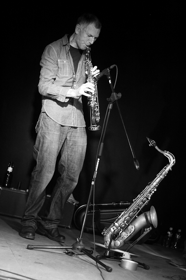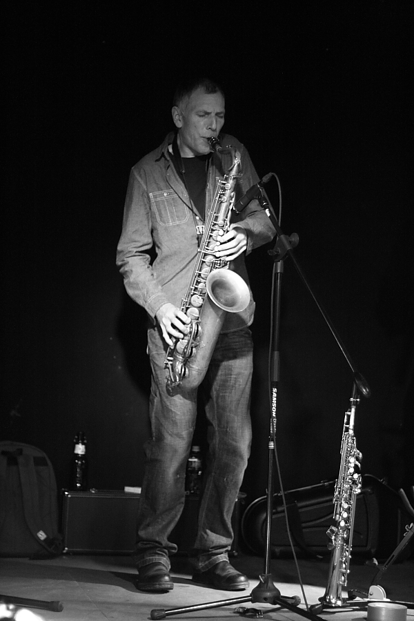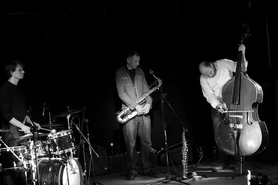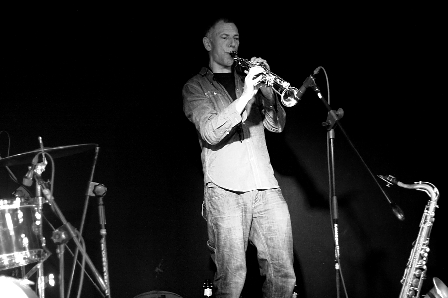 W wywiadzie, jaki ukazał się w przedostatnim numerze PopUp, Ray Dickaty zapowiadał bliską premierę płytową swojego drugiego, po Osaka Vacuum, trzyosobowego składu, Eclipse Trio (obok lidera – Ksawery Wójciński i Hubert Zemler). Materiał dopiero się krystalizuje i na efekty przyjdzie nam jeszcze poczekać, tymczasem zapowiedź mogliśmy usłyszeć na pierwszym po kilkumiesięcznej przerwie koncercie grupy. Złożyły się na niego nie tyle kompozycje, co w znacznej mierze ich zręby (stricte nieimprowizowany charakter miał jedynie utwór grany na bis), które zapewne znajdą swoje rozwinięcie i dopełnienie na płycie. I bardzo dobrze, bo słuchanie tematów, które dawały punkt wyjścia zespołowej improwizacji i obserwowanie procesu ich tworzenia, okazało się nad wyraz satysfakcjonujące. Tylko w niewiele mniejszym stopniu niż w przypadku Osaka Vacuum mamy tu do czynienia z demokratycznym, równym podziałem ról każdego z muzyków, bo rola dwójki partnerów Dickaty’ego zaakcentowana jest dość wyraźnie: ich dojrzała, precyzyjna gra oparta tak na rytmie i transowości, jak i sonorystyce, stanowiła świetne dopełnienie dla mocnych, pełnych emocji partii saksofonu, a sama niekiedy wyznaczała tory dalszej improwizacji. Znakomicie moim zdaniem realizuje się w tym składzie Hubert Zemler, swoją inteligencją, precyzją i wyczuciem wywierając zauważalny wpływ na charakter tej muzycznej wypowiedzi.