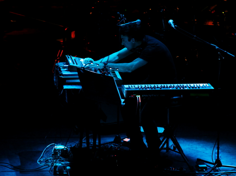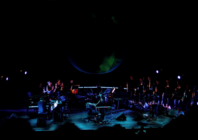 Nie minął jeszcze rok od spektakularnej trasy Sufjana Stevensa opartej o „The Age of Adz”, a już nadarzyła się okazja zobaczenia go z nowym programem. Wymieniłem jego, bowiem „Planetarium” tria Sufjan Stevens (wokal, klawisze), Nico Muhly (pianino, celeste, dyrygencja), Bryce Dessner (gitara elektryczna) na kwartet smyczkowy Navarra String Qyartet i septet puzonistów New Trombone Collective, ze wsparciem perkusisty Jamesa McAllistera (znanego np. z zespołu Sufjana) było cyklem utworów wyraźnie pochodzących od Sufjana, przynajmniej na poziomie całościowego zrębu oraz melodii. Wśród jedenastu kompozycji, poświęconych planetom układu słonecznego, Słońcu i Księżycowi, dziesięć miało teksty, Sun było instrumentalnym interludium. Kruche melodie, rozmach w operowaniu dynamiką, skłonność do pewnego patosu równoważonego delikatnością były wyraźnie Sufjanowe, podobnie jak skontrastowanie wyżej wymienionego instrumentarium lekko toporną elektroniką oraz nadmiarem autotune’a na wokalu. Pod pewnymi względami można było ten program odebrać jako brzmieniowo odmienną kontynuację wątków z „The Age of Adz”, z tym, że bez Muhly’ego nie wyobrażam sobie takiego poprowadzenia kwartetu smyczkowego. Do przerysowania sekcji dętej Sufjan zawsze miał przecież skłonność. Premiera tego programu odbyła się trzy dni wcześniej w Holandii, występ londyński był trzecim. Słychać było pewną surowość, niedopięcie aranżacji, zwłaszcza w pierwszej części koncertu, w której muzycy byli wyraźnie spięci i Sufjan nawet podkreślił, że to „work in progress”. Poźniej, bodajże od utworu Saturn (próbki z warsztatu na MusicNOW w Cincinnati łatwo znajdziecie na YT), zespół nabrał luzu, Muhly pewniej wyeksponował kwartet, całość nabrała rumieńców. Kolejne koncerty zaplanowane są w maju w Sydney, gdyż tamejsza opera jest współproducentem projektu. Miejmy nadzieję, że na tym się nie skończy – materiał zasługuje na album i kolejne występy.