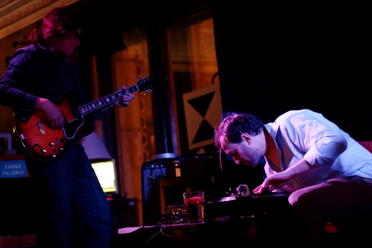 Bardzo ciekawym pomysłem było zestawienie na jednej scenie dwóch poszukujących duetów z gitarą i czymś jeszcze. Łukasz Rychlicki / Paweł Szpura pierwsze koncerty zagrali ponad rok temu, wówczas wychodząc od muzyki Alberta Aylera. Teraz traktować to należy raczej jako punkt wyjścia, inspirację dla zawiązania duetu, który przesuwając się w stronę noise-rockowej wypowiedzi w sumie staje się coraz ciekawszy. Zestawienie ekspresyjnej, ale wyważonej, doskonale operującej brzmieniem gry Łukasza Rychlickiego oraz barwnej, szeroko zakreślonej gry Pawła Szpury jest bardzo płodne i przynosi muzykę wciągającą i trzymającą w napięciu.