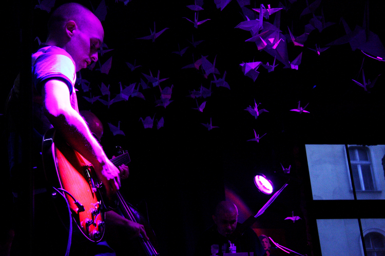 W koncertowej odsłonie A-Kinetonu, kwartetu będącego przedłużeniem projektu Dziki Jazz (gdzie – wg notek prasowych – liderem był Kamil Pater) na pierwszy plan wysunęli się Irek Wojtczak (którego dynamiczne nicowanie brzmień nie do końca może się w tym projekcie rozwinąć), stonowany kontrabasista Paweł Urowski (jego subtelna gra idealnie koreluje z wielobarwnymi eskapadami lidera Ecstasy Project) oraz Rafał Gorzycki ze swoją plastyczną energią, misterną tkanką rytmiczną oraz precyzyjnym, a jednocześnie lekkim i improwizowanym stylem. Pater traktuje gitarę bardzo minimalistycznie, czasem loopuje pojedyncze dźwięki, bawi się harmonią, czy zaskoczy mocniejszą zagrywką, jednak clue jego osobowości muzycznej w tym projekcie to tworzenie ambientu, raczej dopełnianie, niż zagłuszanie przyjaciół z zespołu niezliczoną ilością dźwięków. Muzyka A-Kinetonu wychodzi od jazzu środka, jednak indywiduwalny styl poszczególnych artystów nadaje jej autorski szlif. Zaskoczył dysonansowy, arytmiczny, zainspirowany podróżą po nierównych, hinduskich drogach utwór, zaprezentowany na sam koniec. Bardzo przyjemny koncert.