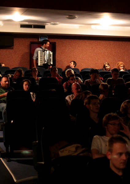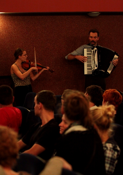 Drugiego dnia zobaczyliśmy A Hawk And A Hacksaw z filmem "Cienie zapomnianych przodków" ("Shadows of Forgotten Ancestors") radzieckiego reżysera Siergieja Paradżanowa. Tutaj kontekst występu był niemal przeciwieństwiem poprzedniego - "Cienie..." to arcydzieło, film, który gdyby powstał po drugiej stronie żelaznej kurtyny, pewnie zgarnąłby Oscara dla filmu zagranicznego (albo za całokształt, jak Fellini). Jednak arcydzieło zapomniane, przez wielu nieodkryte, zduszone przez komunizm, jak i sam reżyser po jego stworzeniu. Jeremy Barnes i Heather Trost tworząc ilustrację dźwiękową do filmu, będącą mieszanką oryginalnej ścieżki, manipulacji nią, reinterpretacji i autorskiej muzyki (czasami polemizującej z oryginałem, czasami zastępującej go i nawet przykrywającej dialogi), za cel postawili sobie przede wszystkim rewitalizację tego obrazu, ukazanie go współczesnej publiczności na nowo ze wszystkimi jego atutami i swoją ważną, lecz drugoplanową rolą. A Hawk And A Hacksaw grają z tym filmem od kilku miesięcy i grają tak, byśmy mogli skupić się na filmie, podkreślając jego dynamikę, magiczny realizm, psychodelię oraz ponadczasowość. Film jest fantastyczny i ciągle imponujący formalnie, fascynujący plastycznie - gros scen to niemalże filmowe obrazy (paradoksalnie podobnie jak krótkometrażowki Sasnala dzień wcześniej), przenikniętę pewną baśniową, tajemniczą mocą. Muzyka łączy dynamiczne, zwarte kompozycje oraz ekspresyjne akcenty. Szkoda, że zamiar zespołu wydania filmu z muzyką na dvd się raczej nie sprawdzi ze względu na trudności z uzyskaniem praw do filmu. Ukaże się pewnie album z wybraną muzyką, a film być może prędzej czy później doczeka się uznania i popularności, na które zasługuje. Być może AHAAH są w trakcie ostatniej europejskiej trasy z tym obrazem, więc naprawdę warto było przyjść do Kina Światowid. Po filmie nastąpił złożony z dwóch utworów bis zagrany saute.
