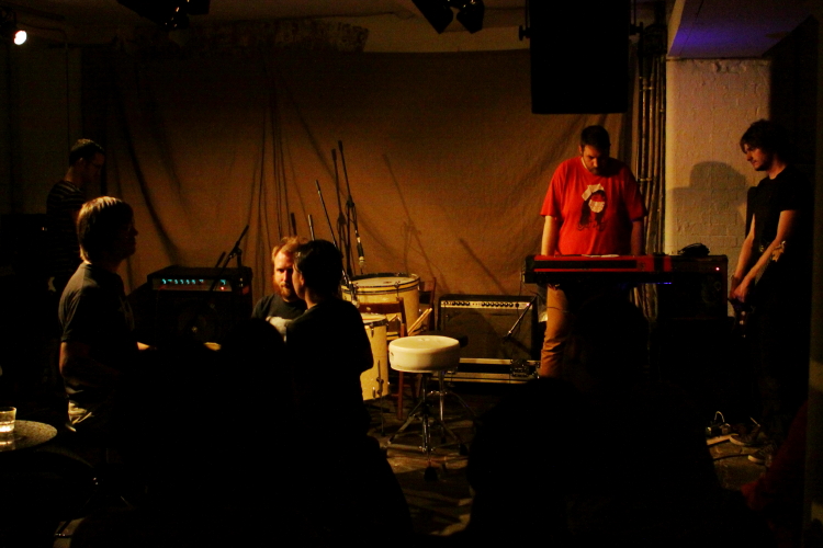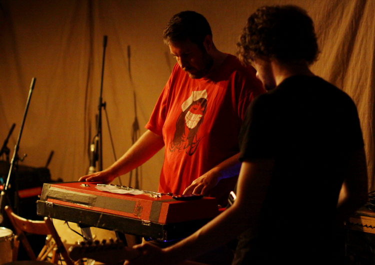 Niedzielny wieczór w Cafe Oto wypełniły tak naprawdę dwa sub-koncerty: rozmazane piosenki Ensemble Economique i Purple Pilgrims, którzy współnie koncertują w Anglii, oraz hipnotyczny performans Man Forever. Jako pierwszy wystąpiły Purple Pilgrims, dwie siostry z dwiema gitarami, rozwodnionymi wokalami, chmurą pogłosu i nieustannym szumo-dronem płynącym niestety z telefonu. Piosenki bardziej zimowe niż lipcowe, trochę nawiązujące do Grouper, przyjemne, ale trochę zbyt jednoznaczne. Ciekawszy, dojrzalszy i bardziej zaskakujący okazał się Brian Pyle aka Ensemble Economique, który rozpoczynając koncert od utworów granych na kontrolerze midi, poźniej sięgnął po gitarę co całemu występowi nadało wciągającej, narastającej dramaturgii.