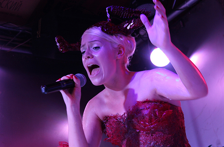Na koncercie wokalistka (która ma za sobą również aktorskie doświadczenia), pokusiła się o przełożenie swojej muzyki na mini-spektakl, z towarzyszącymi tancerkami, czy zmienianymi przez nią strojami - od mrocznej i krwistej diablicy, po demonicznego wampa, aż do niewinnej niewiasty, która w bieli obnaża się przez publicznością, a nawet zdziera z siebie skórę. Przez cały czas artystka podkreślała sztuczność ruchów, także przez odpowiednie wokalizy, nawiązując do bycia lalką, w którą przeobraziła się na okładce swojej debiutanckiej płyty.