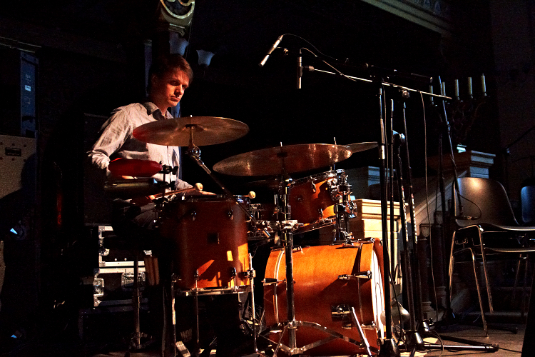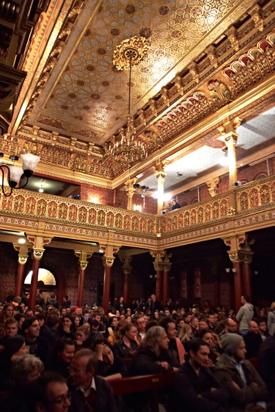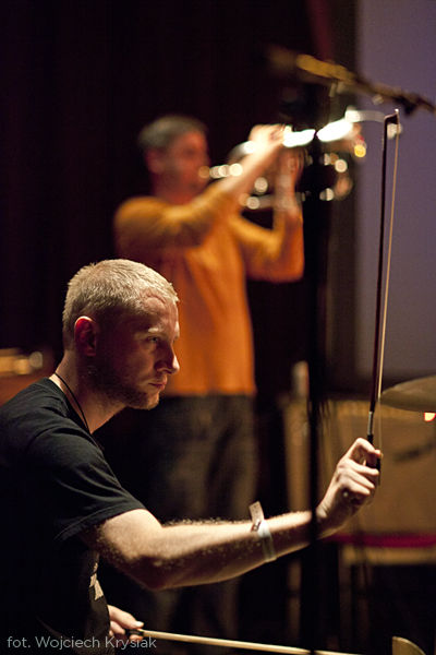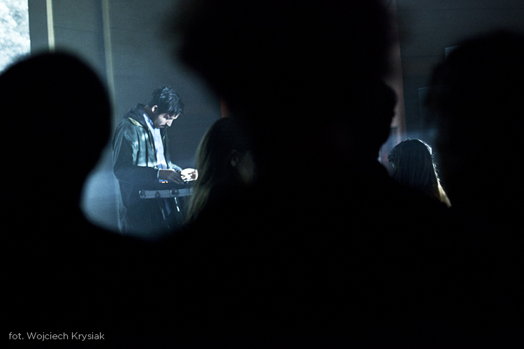 Bardzo ciekawy był też czwartkowy, popołudniowy koncert w Re. Najpierw Marcin Dymiter aka Niski Szum zagrał w całości materiał na gitarę i głos z płyty Songs from the Woods, pokazując, że gitarowe abstrakcje mogą doskonale współistnieć z song-writingiem, nawet przy wykorzystaniu skromnego zestawu efektów. W rok od premiery płyty okazji jej usłyszenia na żywo było niewiele, więc tym lepiej, że takowa zaistniała w Krakowie. Bardzo ciekawym wydarzeniem był też pierwszy koncert Mazzolla z materiałem z albumu Responsio Mortifera. Z pomocą trzech dużo młodszych instrumentalistów, na dwie perkusje, skrzypce grające partie basu, elektronikę różnoraką i sample (np. planowanego nagrania sola Andrzeja Przybielskiego czy przypadkowego nagrania sola Michała Urbaniaka), grając, śpiewając i melorecytując, Mazzoll stworzył sugestywną, intrygującą całość. Grał trochę za długo i napięcie pod koniec opadło, ale ten głód grania można zrozumieć. Świetnie wypadli Etamski i Piernikowski, którzy rozpoczynając pierwszy wieczór w Forum zaprezentowali skoncentrowaną, kameralną alternatywę dla pełnych rozmachu tanecznych brzmień w dużych salach. Gathaspar pokazał mariaż polskiej muzyki ludowej z elektroniką, co bywało ciekawe, ale bywało też ryzykowne, z mieliznami podobnymi do tych, na których grzązł projekt Trebuniów Tutków z Twinkle Brothers lat temu naście. W wyjątkowej przestrzeni synagogi Tempel, świetnie do eksperymentalnych filmów Stefana i Franciszki Themersonów zagrali Sza/Za/Ze. Dźwięki i atmosfera były doskonale zgrane z obrazem, często z przymrużeniem oka. Pythonowską atmosferę wprowadził natomiast operator, który kilkukrotnie za wcześnie włączał projekcje, mimo dość wyraźnych wyjaśnień Pawła Szamburskiego, że najpierw zagrany zostanie utwór poprzedzający taperską część wieczoru.