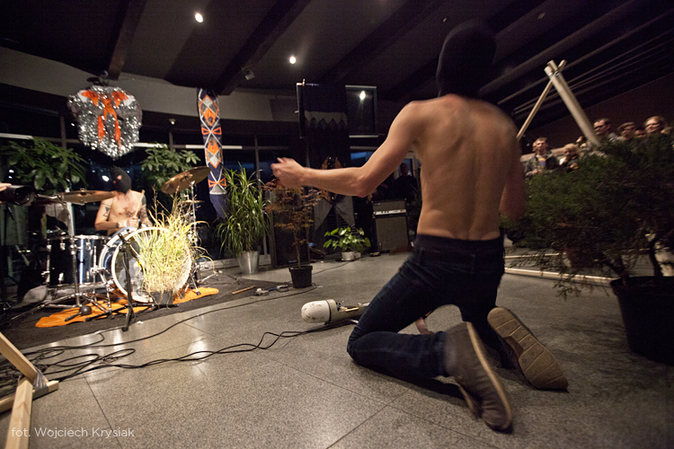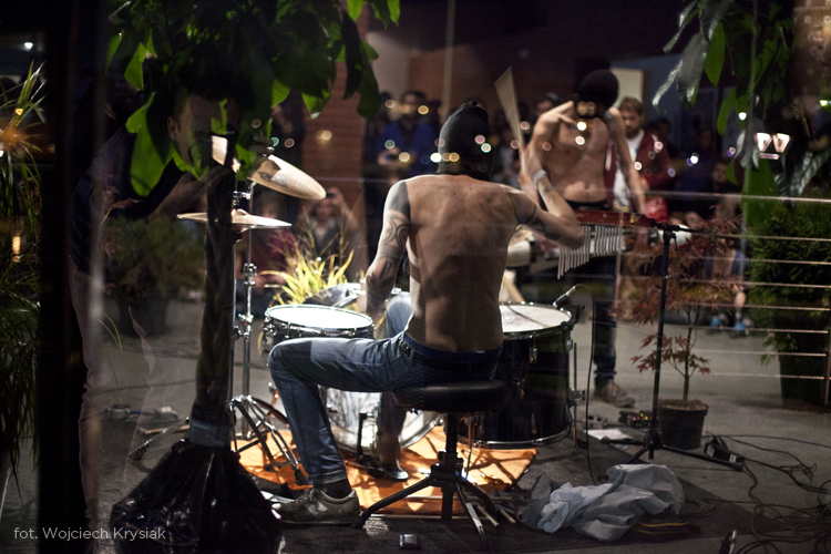 Duże brawa należą się Unsoundowi za stopniowe otwieranie na muzykę rodzimą, bo po pierwsze naprawdę dobrze broni się ona w tym kontekście, a po drugie daje to wielu zespołom możliwość zagrania dla kilkukrotnie bardziej licznej publiczności niż z reguły mają one okazję. Duet Piotr Kurek / Hubert Zemler, czyli Piętnastka, potwierdził, że świetnie rozwija się w elektroniczno-analogowo-perkusyjnej formule. Umiejscowienie koncertu BNNT we foyer Mangghi pozwoliło duetowi zaprezentować własny pomysł na scenografię, gdyż ich sound-bombing z reguły odbywa się w gotowej przestrzeni miejskiej. Porozstawiane w okolicy bębnów doniczki z krzewami, błyskotki, wysokie, drewniane trójkąty imitujące ogniska i koce z podobiznami pogańskich bożków skierowały koncert Konrada Smoleńskiego i Daniela Szweda w ryzykowną stronę teatralnego przedstawienia. Jednak ciężkie i bezkompromisowe brzmienie oraz szaleństwo muzyków doświadczane face to face, zdecydowanie ich w naszych oczach obroniło. Dobrze wypadło też Innercity Ensemble. Zrodzony z improwizacji hipnotyczny kolektyw łączący minimalizm, psychodelię, jazz i post-rock zagrał oryginalnie i poszukująco, ale słychać było też, że muzycy w tym składzie grają ze sobą rzadko.