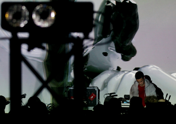 Występ Atom™ okazał się największym zaskoczeniem festiwalowej środy, gdyż artysta uchodzący za kapryśnego i nieznośnego okazał się pełnym humoru i dystansu człowiekiem. Jego audio-wizualny set zamienił się w one man show, podczas, którego publiczność naprzemiennie śmiała się i biła brawo. Charakterystyczne dla produkcji Schmidta minimalne clicki i chwytliwe, dynamiczne melodie z samplera pokazały również, że współczesna i nowoczesna brzmieniowo muzyka może doskonale radzić sobie bez wszechobecnych laptopów z jabłkiem w logo. No więc co z tym końcem świata? Pomidor. (errata: dostaliśmy info, że Atom™ grał na grooveboksie, który był podłączony do jego macbooka i leżał schowany z tyłu. Czyli jednak z komputerem.)