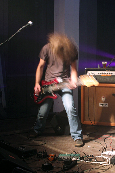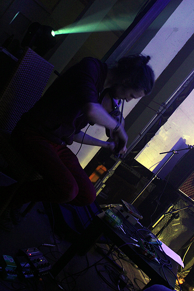 Zaraz po nich wieczór zaczął rozkręcać się na dobre. Na scenie zainstalował się 2kilos&more, osobliwy duet z Francji, który w swoich kompozycjach łączył ambientowe, rozwijające się pejzaże z często potężnie brzmiącymi bitami, wyznaczającymi kierunek kompozycji. W kilku momentach gitarzystka wspierała elektroniczne zagrania, na swoim instrumencie budując narastające ściany dźwięku, jednak bez przesadnego popadania w patos, ale odpowiednio zachowując umiar. Ta początkowo stonowana muzyka, wwiercała się i pokazała jak świetnie można stworzyć nastrój przy dosyć oszczędnie wykorzystywanych środkach. Co ciekawe – z wpisanymi w nazwę festiwalu gatunkami „shoegaze, spacerock, alternative” grupa miała stosunkowo mało, ale za to świetnie pokazali, że przestrzenne brzmienie można osiągnąć na wiele sposobów. Plus brawa za pomysłowe wizualizacje, wyświetlane na specjalnej tkaninie nie za, ale przed muzykami.
