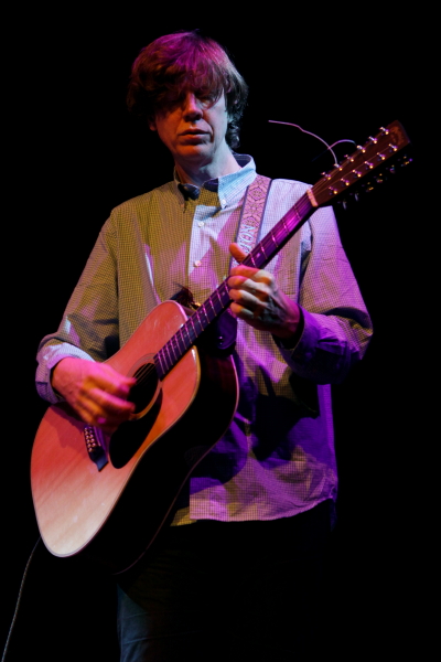 Thurston Moore też połączył piosenki i instrumentale, ale była to diametralnie inna muzyka. Cały koncert zagrał na dwunastostrunowej gitarze, z której Thurston potrafi wydobyć zarówno bogate harmonicznie, barwne melodie, jak i dysonanse i akustyczny quasi-noise przywodzący na myśl jego elektryczną oryginalność. Zaczął od piosenek z Demolished Thoughts, potem zagrał bodajże trzy utwory instrumentalne, w tym nowe, niepublikowane, w których można było usłyszeć całego Thurstona - połączenie melodii, poetyki, swoistej melancholii i szorstkości. Występ zamknął tak, jak w ostatnich dwóch latach robi to często, niezależnie od składu, czyli grając "Psychic Hearts". To był zupełnie inny styl gry niż Chapmana, zupełnie inny rodzaj humoru, podobna swoboda i komunikatywność. Tak się składa, że najlepsze koncerty Thurstona, jakie widziałem miały miejsce w Londynie - kameralne warunki, publiczność, która w większości zna go dobrze i nie krzywi się, kiedy co trzy numery Thurston przeczyta dla odmiany wiersz albo opowie anegdotę o Matsie Gustafssonie albo o tym, jakie gafy popełnił dzień wcześniej w folkowym klubie w Newcastle, dają mu duży luz, na którym gra błyskotliwie.