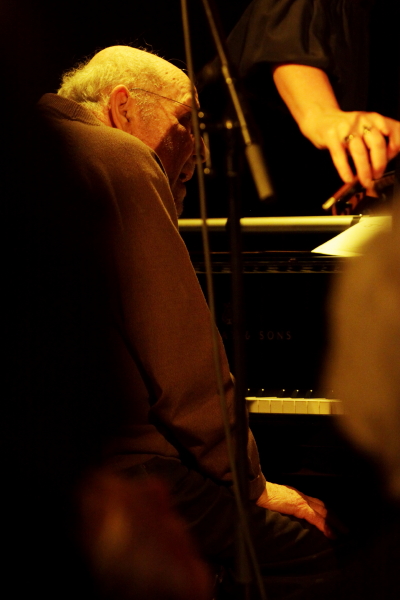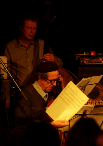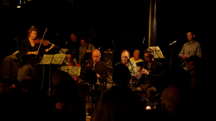 ICP Orchestra spędzili w Vortexie (takie londyńskie Pardon, To Tu, tylko, że ze stolikami i regularnymi koncertami Evana Parkera) cały tydzień, grając improwizowane koncerty w podskładach i z muzykami brytyjskimi, który to tydzień zwieńczyły dwa koncerty kolektywu - mi udało się być na ostatnim. Aktualny skład holenderskiego kolektywu (ICP rozumiane jako wydawnictwo i metoda obchodzi w tym roku 50-lecie) to Mary Oliver (skrzypce), Tristan Honsinger (wiolonczela), Ernst Glerum (kontrabas), Thomas Heberer (trąbka), Wolter Wierbos (puzon), Ab Baars (klarnet i saksofon tenorowy), Michael Moore (klarnet i saksofon altowy), Tobias Delius (saksofon tenorowy), Han Bennink (perkusja), Misha Mengelberg (fortepian) i jest to skład absolutnie niezwykły - złożony z charakterystycznych instrumentalistów, którzy mówią różnymi głosami, ale wspólnie tworzą spójną, bogatą narrację. Jest w niej porywająca radość grania, a także zdumiewające połączenie big-bandowej zwiewności, uzależniającego swingu, oraz eksperymentalnego zacięcia na styku improv i kameralistyki. W Vortex zabrzmieli imponująco - z mikroskopijnym oddaniem detalu i głębią całości oraz bogatym kolorytem zarazem.