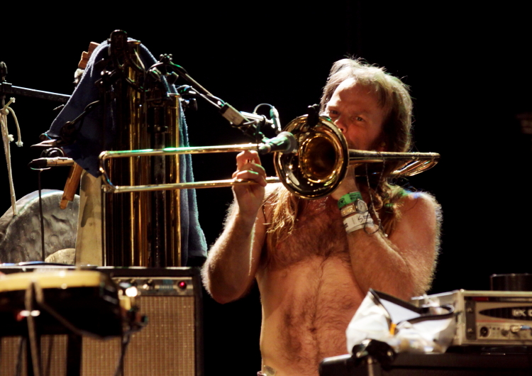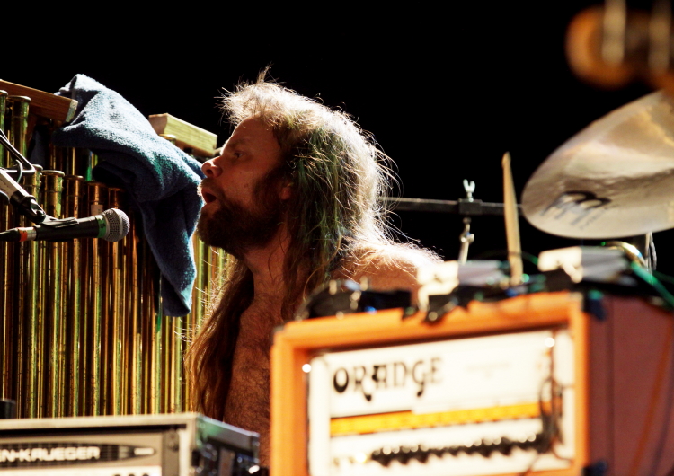 Na pierwszej wizycie reaktywowanych Swans w Polsce, w grudniu 2010, zespół Michaela Giry był imponującą, ale dość konwencjonalnie działającą machiną - rozwijającą w rozbudowane formy piosenkowy materiał z My Father Will Guide Me... i starsze utwory. Jednak dość szybko metodyka ich działania uległa odwróceniu i koncerty przeistoczyły się w laboratorium nowo powstającej muzyki. Tak więc z ubiegłorocznej płyty The Seer usłyszeliśmy w sumie więcej na poprzedzającym premierę koncercie na Offie, niż teraz na drugiej po niej europejskiej trasie. Koncert w Stodole pokazał też jeszcze wyraźniej, że Swans zostawilii pojęcie "piosenki" za sobą. Co prawda Gira sięga raz po raz po mikrofon i zręby kompozycyjne są widoczne, ale ramy czasowe utworów rozdęły im się już poza wszelkie konwenanse - tytułowy utwór z ostatniej płyty trwał tu chyba z godzinę, a w jego wnętrzu pojawiły się rzeczy zupełnie nowe. Mnie to bardzo odpowiada, bo widząc ich na żywo za każdym razem jestem zaskakiwany, a z reguły druga część koncertu jest w ich przypadku najlepsza. W porównaniu do koncertów w roku ubiegłym, tym razem rytm wysunął się przed dron, choć i tego nie zabrakło, podobnie jak miriady brzmień nie-rockowych, od perkusjonaliów po flet i puzon (nowy element w arsenale grupy).