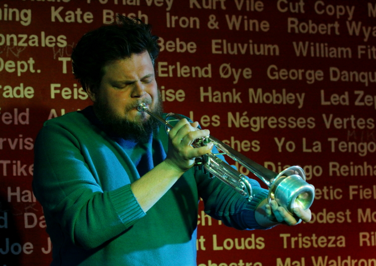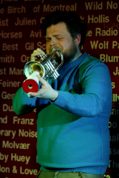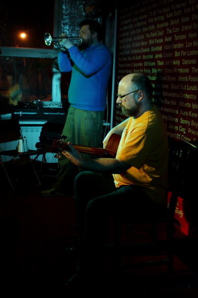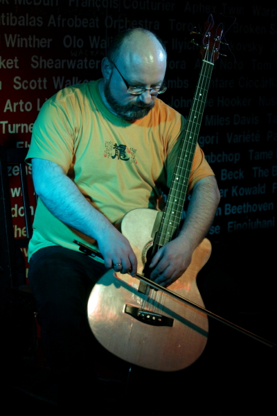 Koncert duetu Artur Majewski (trąbka, kornet) / Rafał Mazur (akustyczna gitara basowa) składał się z szcześciu rozległych utworów opartych na improwizacji. Duetów "trąbka +" lub "bas +" spotyka się sporo, ale to zestawienie było dość szczególne, nie tylko ze względu na nieobecność instrumentu harmonicznego. Nieco introwertyczny, ale wyrazisty styl gry Majewskiego, grającego akustycznie, lecz wykorzystującego często tłumiki; oraz ruchliwy, naszpikowany dźwiękami i unikający groove'u styl gry Mazura na jego oryginalnej gitarze basowej (akustycznej, lecz podłączonej do wzmacniacza) nie stanowią oczywistego połączenia. Nie był więc to bardzo "chwytliwy" koncert, można wręcz powiedzieć, że na swój sposób był on hermetyczny, wymagający, ale w miejscach nieoczywistych dzieją się często rzeczy ciekawe. Zwłaszcza, że muzycy wprowadzili pewną różnorodność w wykorzystaniu instrumentów i brzmieniu duetu - czasem Majewski tworzył rozlane plamy, po których poruszały się frenetyczne improwizacje Mazura, czasem basista sięgał po smyczek i otwierał pole do bardziej sonorystycznych poszukiwań. Dużą rolę odgrywała też dynamika i świetne wykorzystane zostały akustyczne walory Pardon To Tu. Latem ukazać ma się płyta kwartetu z udziałem obu muzyków oraz Kuby Suchara i saksofonistki altowej Anny Kaluzy, ale czy ten poszukujący koncert daje jakieś o niej pojęcie, trudno powiedzieć.