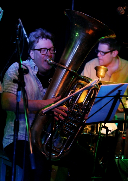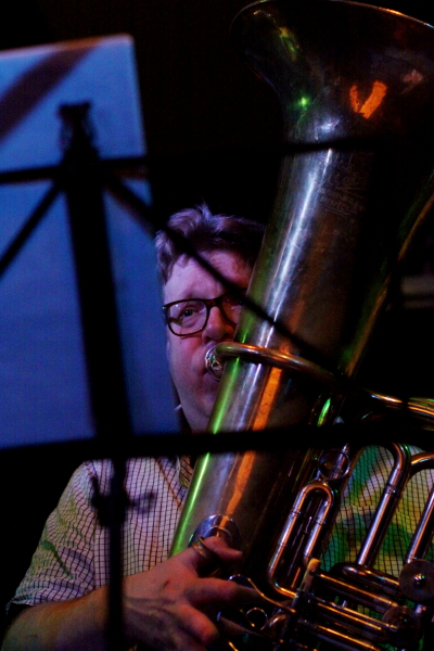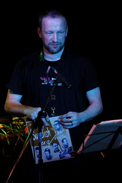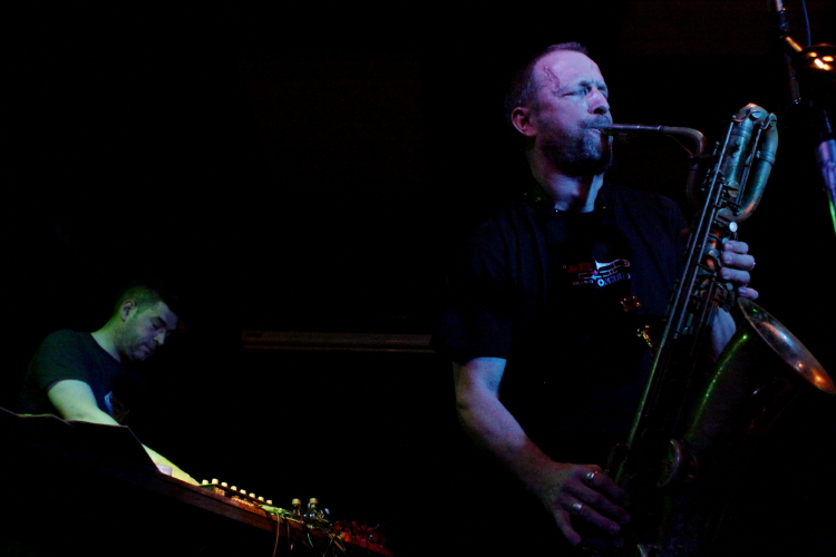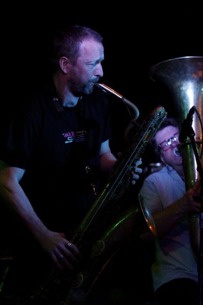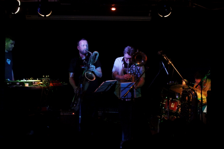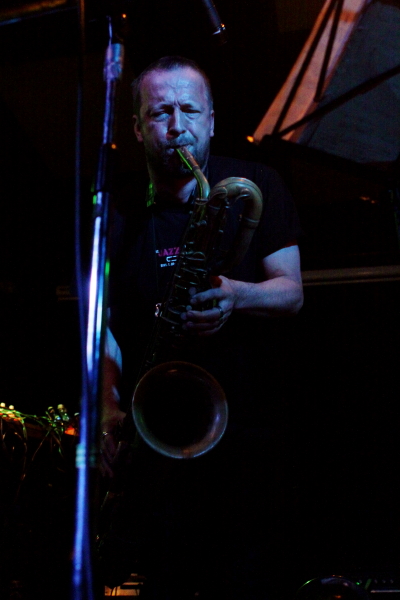 Skoro koncerty w Powiększeniu i Cafe Kulturalna były tego dnia zsynchronizowane i nawet bezprecedensowo można było kupić karnet na oba, to i fotorelacja będzie wspólna. Swedish Azz w Powiększeniu wystąpiło jako kwartet, bez wibrafonisty Kjella Nordesona, jednak ich koncepcja i muzyka obroniła się nawet bez jednego instrumentu. Grupa zajmuje się swoistymi reinterpretacjami szwedzkiej muzyki lat 50. i 60., jazzu, ale nie tylko. Przemyślana, ale przewrotna i podana z lekkością wariacja na temat muzyki bądź co bądź większości odbiorców nie znanej, była dość stonowana, daleka od potężnych wybuchów wielu projektów Matsa Gustafssona. Ten oprócz saksofonów obsługiwał także instrumenty elektroniczne, ale najbardziej zdumiewające instrumenty miał Per-Åke Holmlander, który na samej tubie potrafi być i sonorystą, i ucieleśnieniem funku, a tutaj wykorzystywał także inne dęte. Perkusista Eric Carlsson również świetnie manewrował między swingiem a abstrakcją, a elektroniczne faktury dieb.13 zagęszczały atmosferę, nadając jej nieco hauntologicznego posmaku, czasem równoważąc też nieobecność wibrafonu. Bardzo dobry koncert.