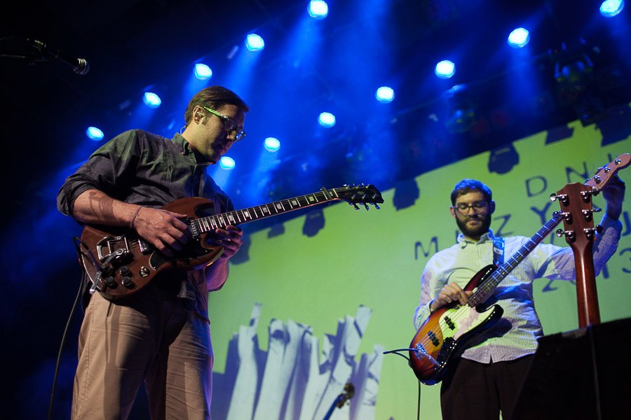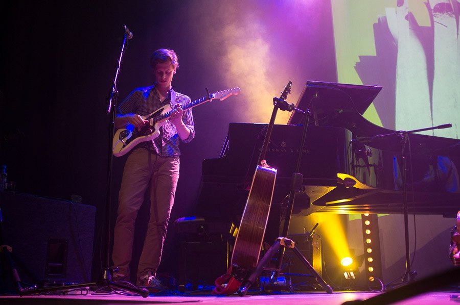 Finałem minionego weekendu był koncert teksańczyków z Balmorhea, ciekawie nawiązujący do idei festiwalu (głównie przez instrumentarium), ale trochę ckliwy i przesłodzony. Bliżej było mu do romantycznych post-rockowych pasaży, niż wnikliwego tworzenia własnego języka "muzyki nowej". Gitary elektryczne, akustyczne czy instrumenty smyczkowe tworzyły zwarte kompozycje, ale zbyt często korzystały z oklepanych patentów bliskich masie formacji opracających się w instrumentalnej muzyce rockowej. Na dodatek zupełnie niepotrzebna wydała mi się nieustająca żonglerka zespol instrumentami, która wyglądała wręcz komicznie. Owszem, gdy coś takiego robią muzycy Tortoise, ma to sens i uzasadnienie, ale w tym przypadku przyjęło to raczej wyłącznie teatralny charakter. Tym bardziej, że w pamięci wciąż pozostawal skromny ale fantastyczny Pianohooligan, który świetnie poradził sobie grając na fortepianie.