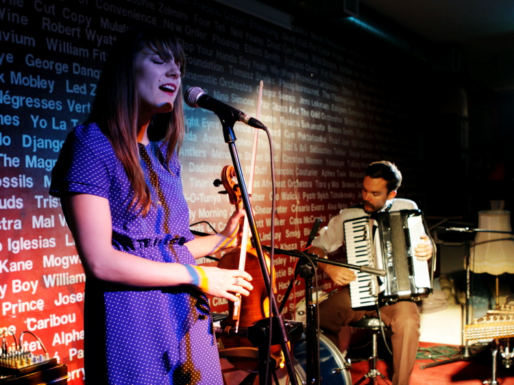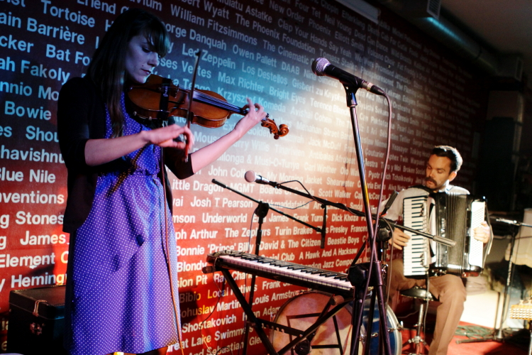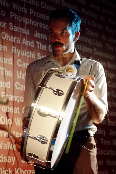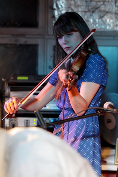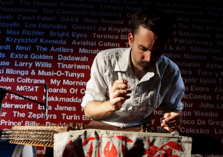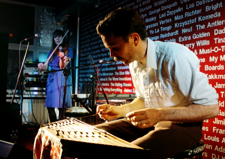 Poprzedni występ A Hawk And A Hacksaw w Polsce, niecały rok temu, kończył się akustycznym graniem na środku katowickiego kina Światowid. Ten niejako rozpoczął się jego kontynuacją - muzycy przeszli przez klub grając i dopiero na drugi utwór zainstalowali się na scenie. Po numere podkreślającym post-filmowy charakter ich nowej płyty You Have Already Gone To The Other World, wzbogaconym o sample głosu z "Cieni zapomnianych przodków" Paradżanowa, Jeremy Barnes i Heather Trost przez kilka kolejnych numerów grali w klimacie węgierskiej tańcbudy, żwawo, zgrabnie wymieniając się melodycznym pierwszym planem i rytmiczno-fakturowym tłem. Ale ich muzyka tak naprawdę rozkwitła dopiero gdy Barnes pierwszy raz wykorzystał santur, czyli nieduże irańskie cymbały, ale podłączone pod zestaw efektów gitarowych, dzięki czemu brzmiały one nie tylko barwnie, ale też potężnie. Nagle w skrzypcach ujawnił się gitarowy fuzz, pod powierzchnią zabrzmiał dron, a całość nabrała psychodelicznych odcieni, zwłaszcza w nowych kompozycjach. Z umiarem wykorzystywana była też loopstacja, dzięki której Barnes nagrywał czasem rytmiczny trzon pod szarże santuru. Ale pomysłowość zespołu widać było także w nie-technologicznych pomysłach, jak np. w sprytnym zestawie perkusyjnym na centralę, tamburyn i dzwonki. Dzięki temu dwoje muzyków mogło generować bogaty, różnorodny dźwiękowy pejzaż.
