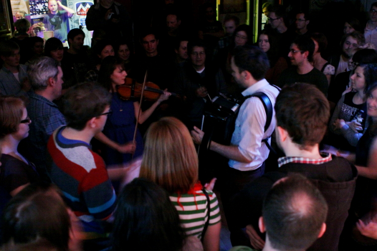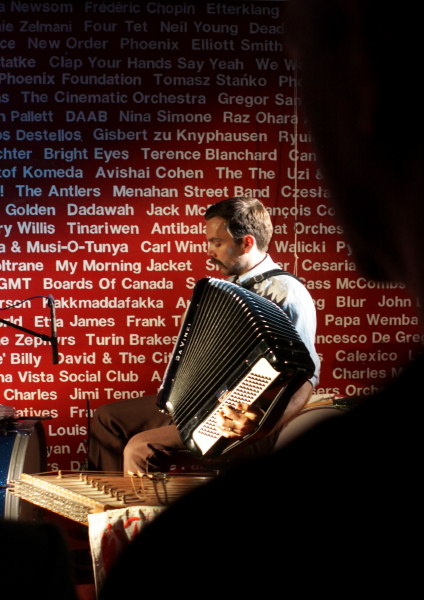 Połączenie fascynacji tradycyjną muzyką wschodnio-europejską z wywodzącym się z rockowego grania, ale oryginalnym sposobem amplifikacji brzmienia i abstrakcyjnymi przestrzeniami sprawia, że AHAAH nie są tylko grupą przerabiającą folk dla niefolkowej publiczności, ale zespołem, który na folkowym trzonie buduje własną jakość, swoisty magiczny realizm. I po rozwinięciu skrzydeł nawet te trzy akustyczne utwory na skrzypce i akordeon, zagrane na bis ponownie na środku sali, miały jakieś drugie dno. AHAAH kilka lat temu koncertowali w większym składzie, ale właśnie w duecie podobają mi się najbardziej - wówczas ich oryginalność i pomysłowość jest najlepiej widoczna. Piękny koncert.
