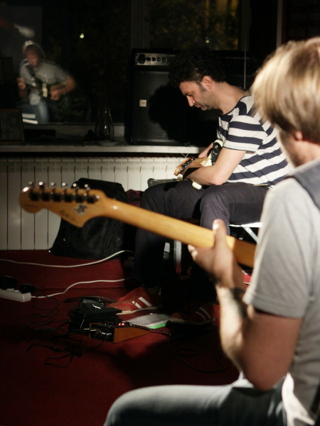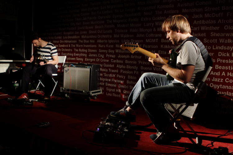 Improwizowany koncert na dwie gitary elektryczne w rękach dwóch muzyków o dość różnym stylu: Piotr Bukowski bliższy jest tradycji Frippa i Fritha, Łukasz Rychlicki - Thurstona Moore. Obu muzyków widziałem wcześniej wielokrotnie, ale w innych składach - połączenie ich stylu nie jest oczywiste i natychmiastowe. W duecie, co nie było niespodzianką, pierwszy więcej operował grą zrytmizowaną i repetycjami (choć nie tylko), drugi fakturami (choć nie tylko). Koncert oparty był głównie o zdarzenia dźwiękowe, bez piosenkowych form. Występ, jak to improwizacja, był nierówny - zdarzały się momenty bardzo ciekawego zestawienia chropowatych struktur Rychlickiego i bardziej błyszczących figur Bukowskiego, ale zdarzały się też momenty, w których napięcie opadało. Bądź co bądź, był to chyba premierowy koncert. Niespodzianką było włączenie się w występ Marcina Gokieli na wokalu, który pozbawiony mikrofonu sprawiał tym bardziej obłąkane wrażenie, zmieniając dynamikę sytuacji na scenie - na cały koncert byłaby to przesada, ale dwa wejścia były zaskakujące, czy wręcz prowokacyjne.